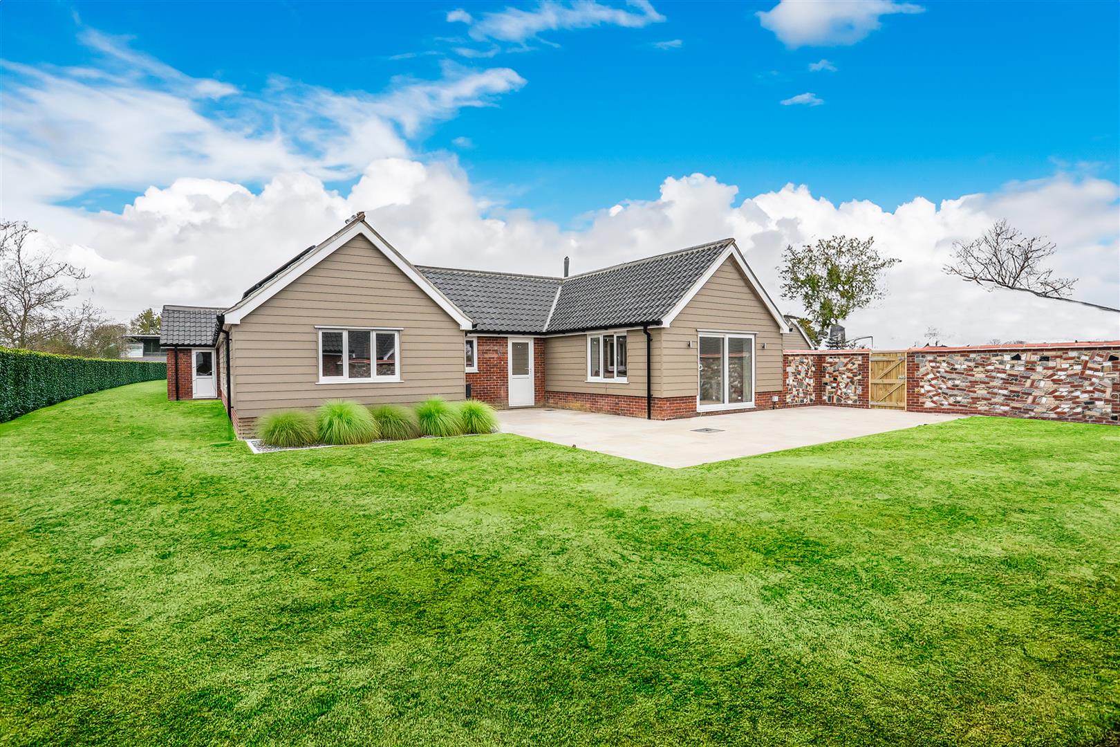 Externally, each property be it a bungalow or house, has a generous garden with brick rubble walling being distinctive to Danny’s properties. Each has a single or double garage and a spacious sandstone patio. Gardens will be either seeded or turfed depending on time of year.