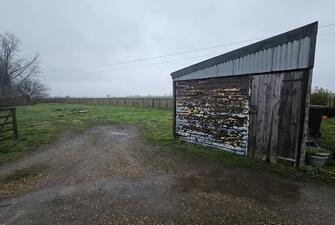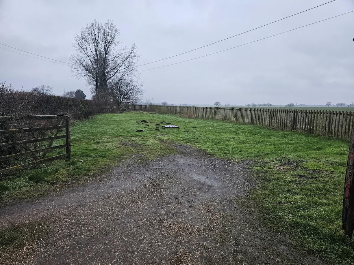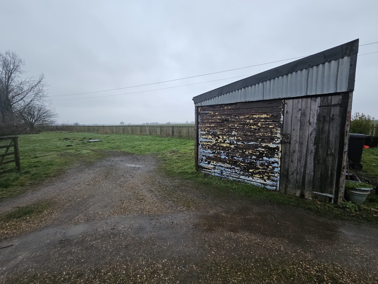 Outside: Spacious enclosed garden to the side of the property with shed and ample parking.