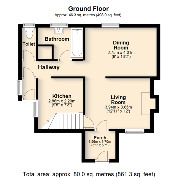 The Property: The ground floor consists of an entrance porch, living room with wood burning stove, kitchen, dining room and family bathroom with separate WC. Upstairs there are three bedrooms, the first located at the top of the stairs, leading to the other two.