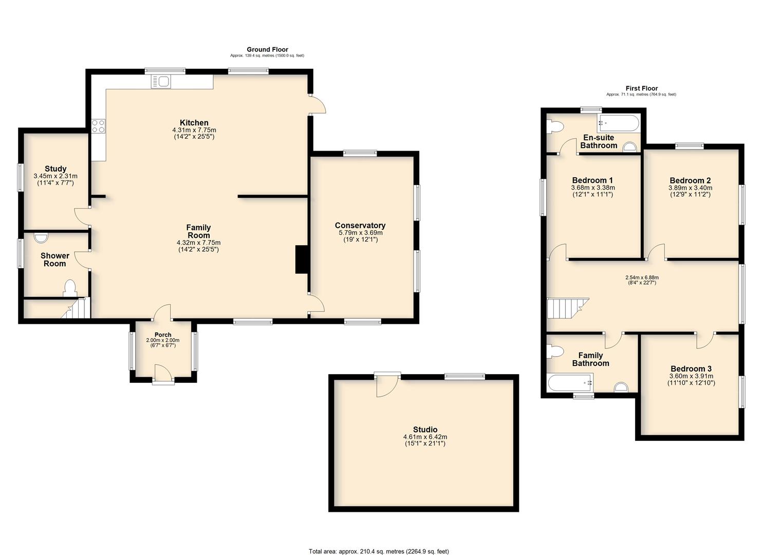 Additional highlights include a separate studio space, perfect for home working or creative use, and a double garage providing secure parking and extra storage.