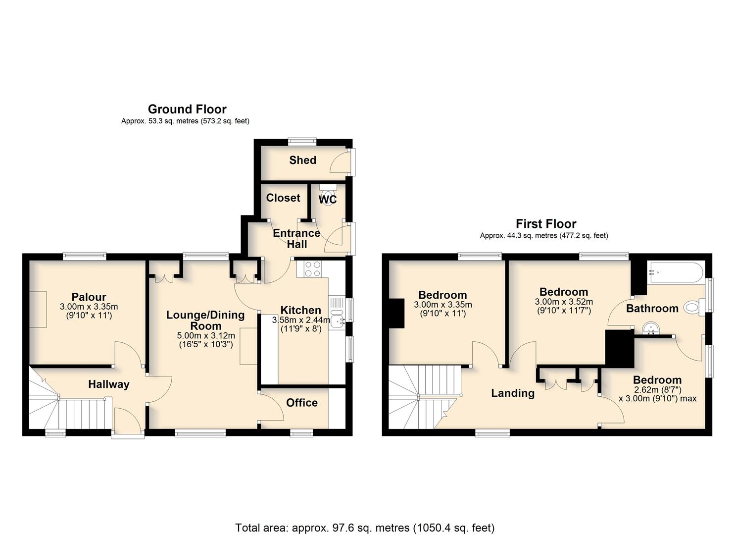 Services: Property is connected to mains electricity and mains water. Heating is via night storage heaters and wood burning stove. Newly installed double glazed windows and private drainage.