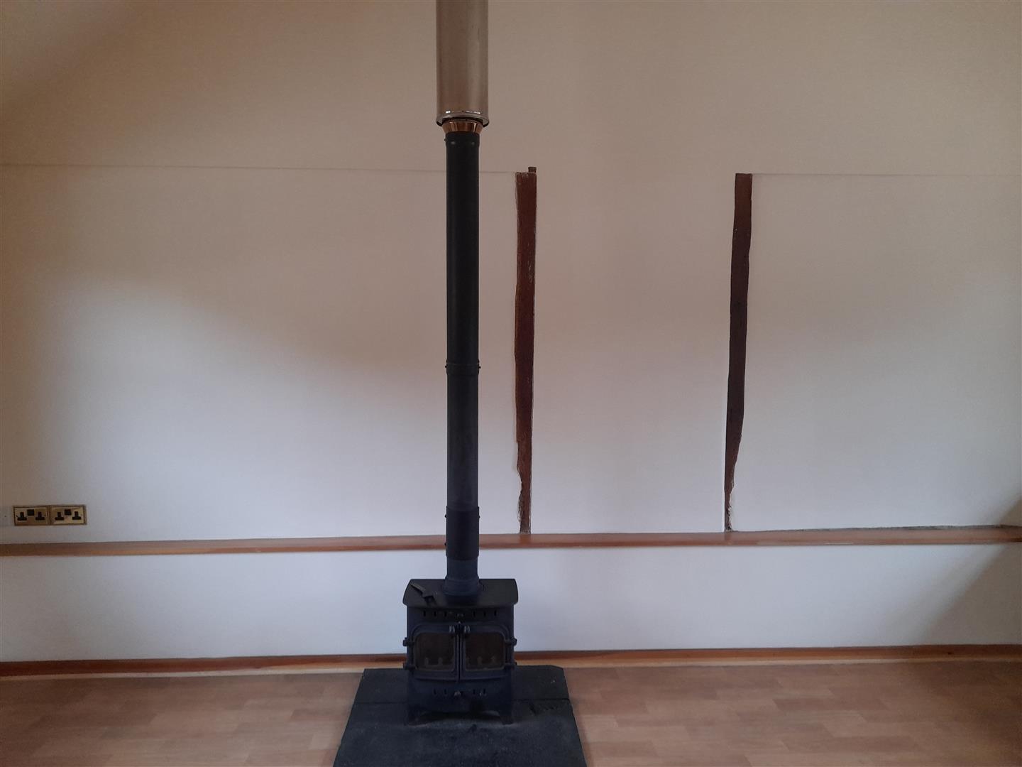 Services: Mains electricity and water. Sewage treatment plant. Heating via storage heaters and a wood burning stove in the open-plan kitchen/living room.