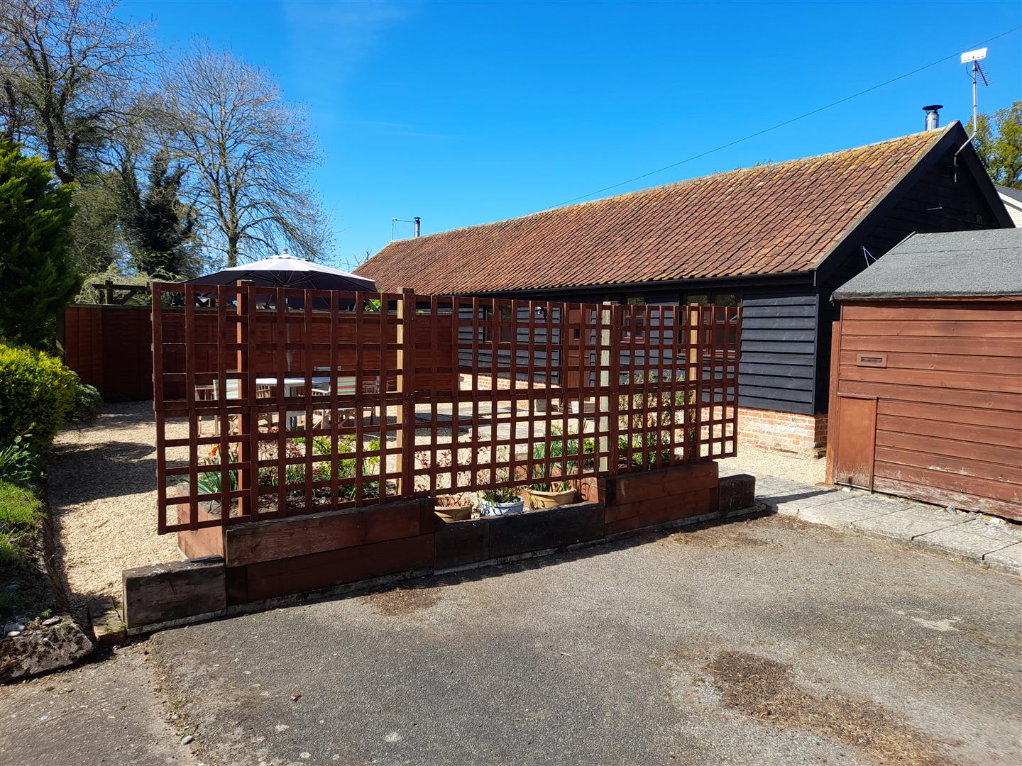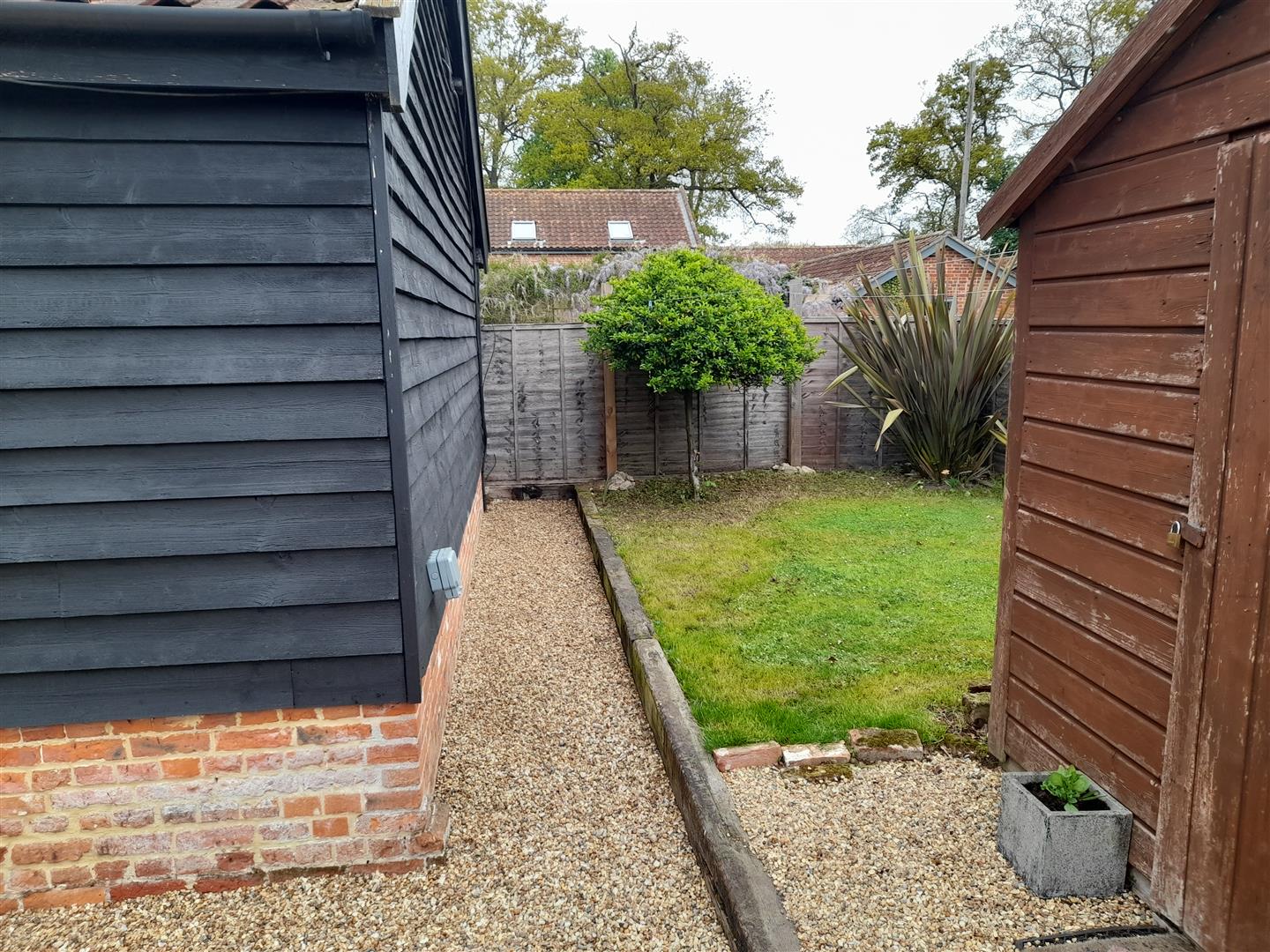 Outside: There is a side garden mostly laid to lawn and a garden shed. Parking to the front. To the front is a semi-enclosed area of shingled front garden for the private use of this residence