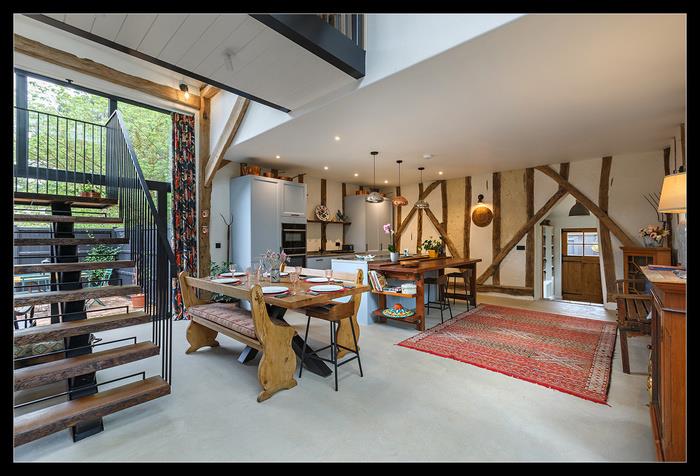 A beautifully presented timber-framed barn that seamlessly blends character features with modern comforts. The property offers versatile accommodation, including two well-proportioned bedrooms on the ground floor, with the principal suite on the first floor, complete with an en-suite bathroom and a walk-in wardrobe. The heart of the home is a spacious open-plan living area, thoughtfully designed to provide a light and airy feel, with direct access to the enclosed terrace—ideal for both relaxing and entertaining. Directions: what3words///toffee.contemplate.hothouseThe Property: The property benefits from an open-plan kitchen, dining and living space on the ground floor, along with entrance hall, utility and WC to one end of the ground floor and two bedrooms with a family bathroom to the other end. Upstairs on the mezzanine level is the principle suite with ensuite shower room and walk in wardrobe along with a spacious sitting room with gable end window. The property is offered on an unfurnished basis however the wardrobe downstairs between the two bedrooms is to remain in the property.