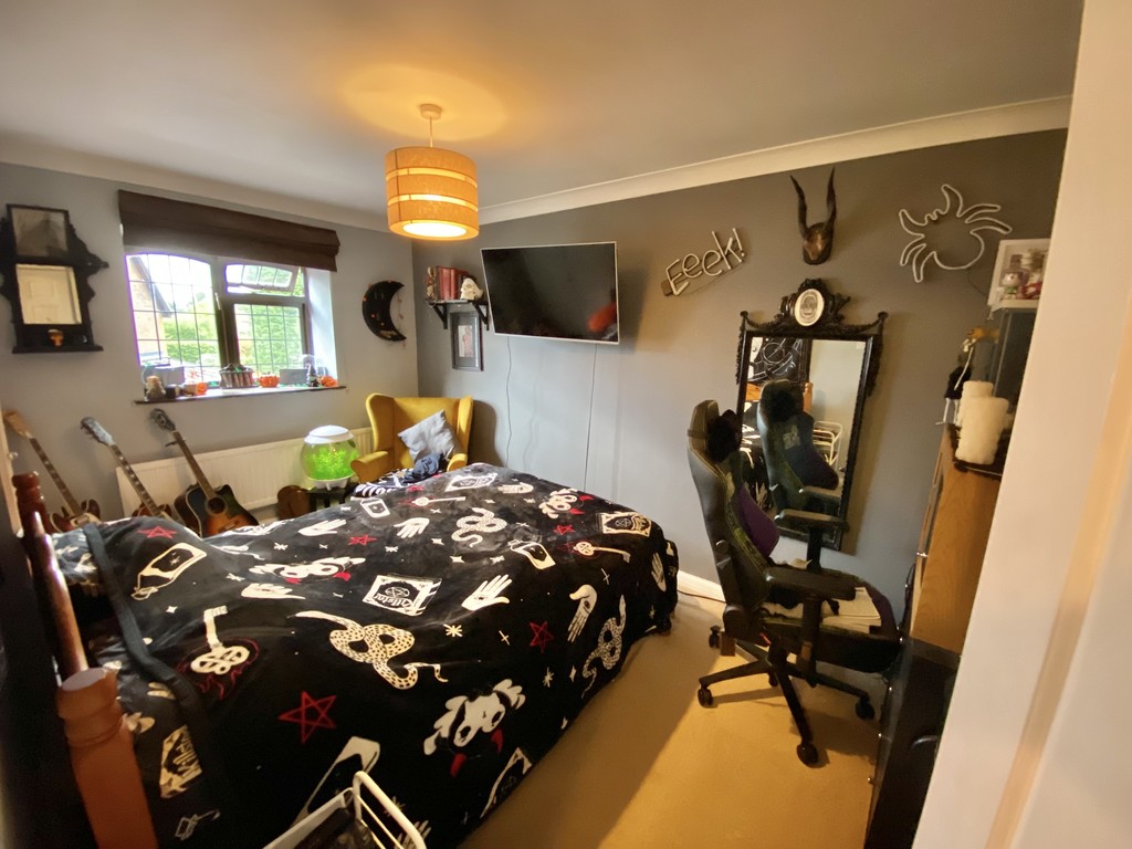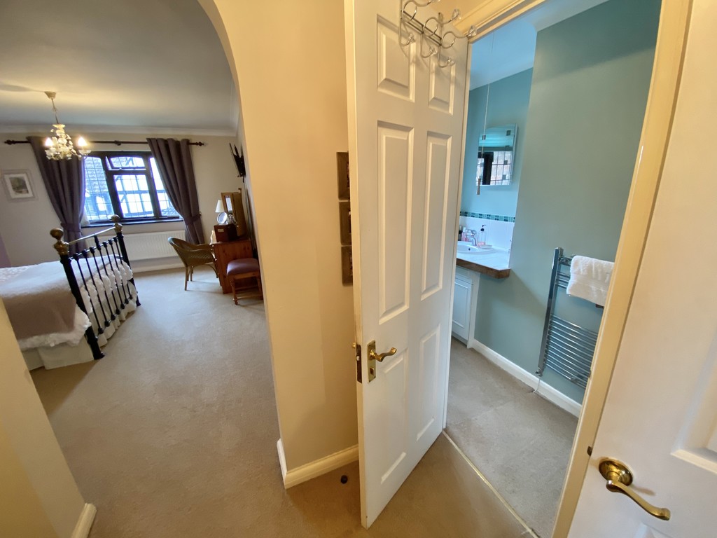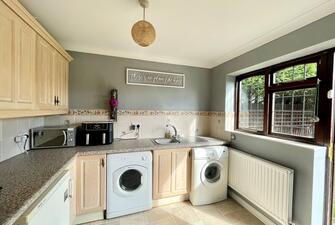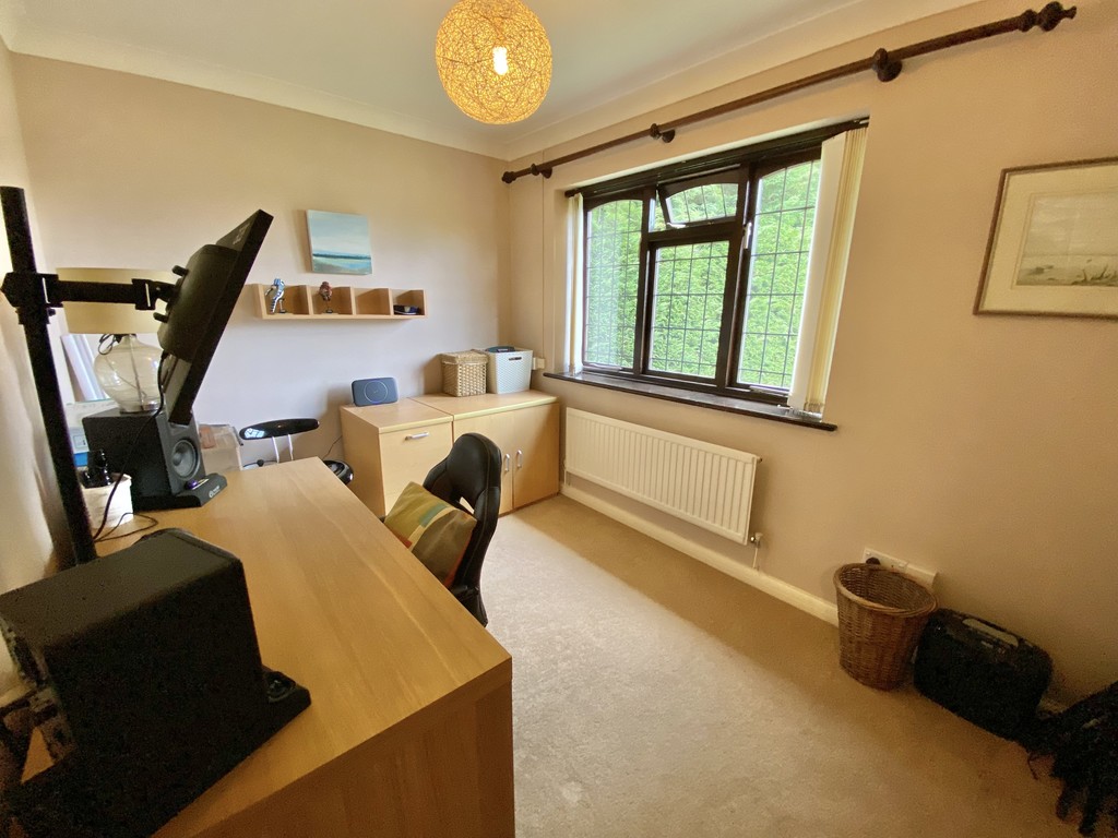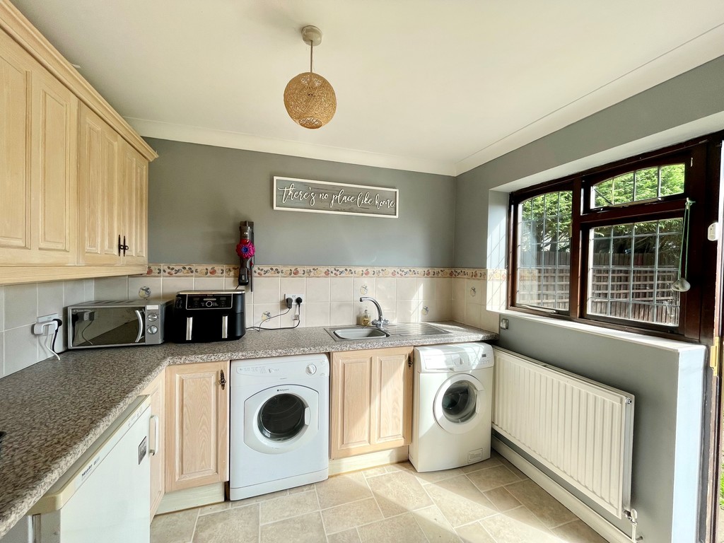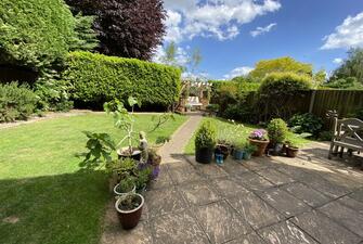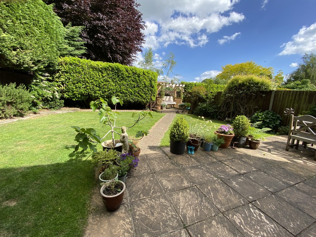 Outside This house has garden to the front and, being at the end of the road, it has a larger and easier parking and turning area in front of the integral garage, allowing space for several cars. There is garden at the front and a side access leads around to the rear garden which is quite private especially for a house in town. The garden is east facing and catches the sun for most of the day. It is laid to lawn with a planted gravel border, timbered sitting area, and large patio.