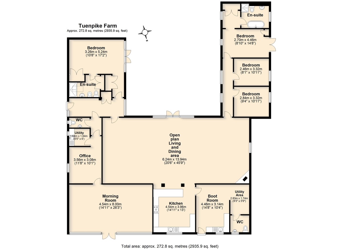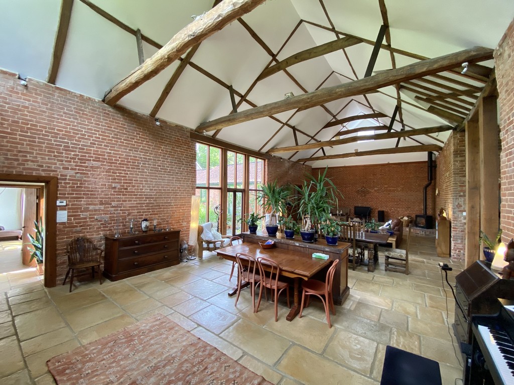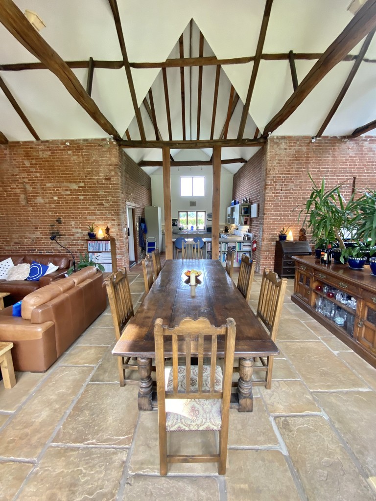 The Barn The barn is large providing just shy of 3000ft² of living space and is single storey. The design has been to create a feeling of true barn living with the main brick central core being fully vaulted and this area is used as open plan living with the modern kitchen leading off. The rear wings are used as bedroom areas, whilst the side wing, and around to the rear are the owners studio work areas. Overall this barn has a feeling of space and tranquillity.