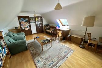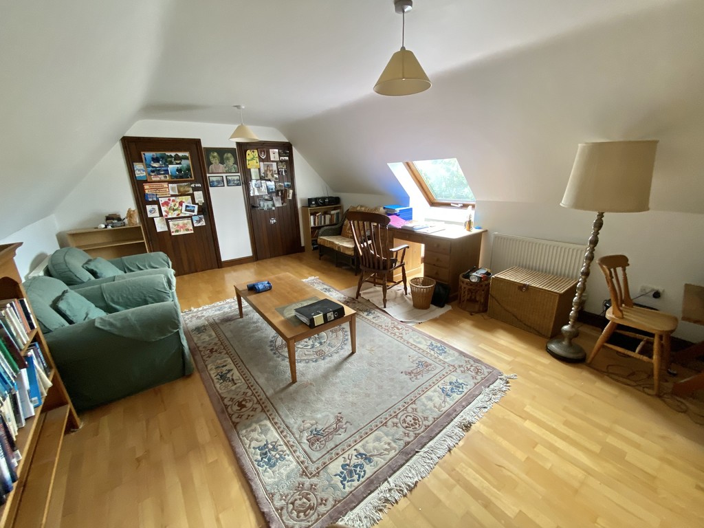 On the first floor are four double bedrooms, two with en-suite shower rooms, and three have built-in wardrobes. The family bathroom is spacious and has a three piece suite. On the second floor are two attic rooms with Velux windows overlooking the garden and the countryside beyond. One is used as a study and is fitted out creating practical storage. The other attic room currently serves as a craft room and has ample storage cupboards. A store room is also located on this floor.