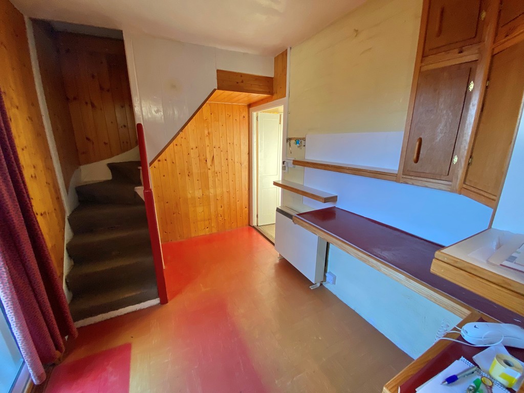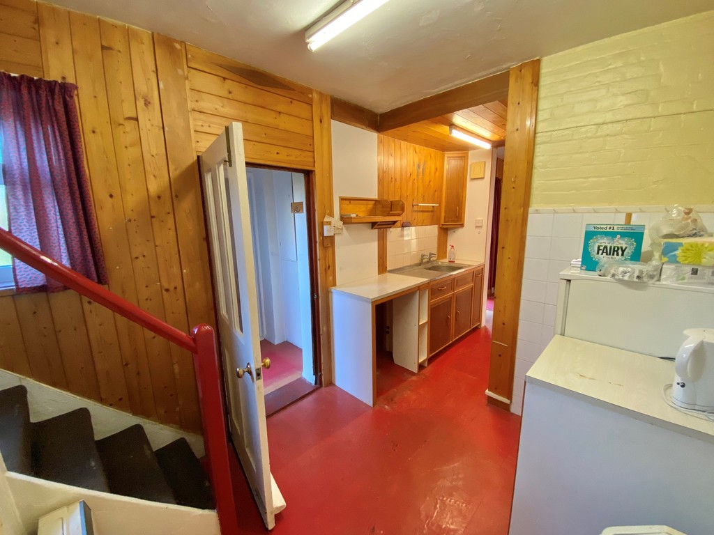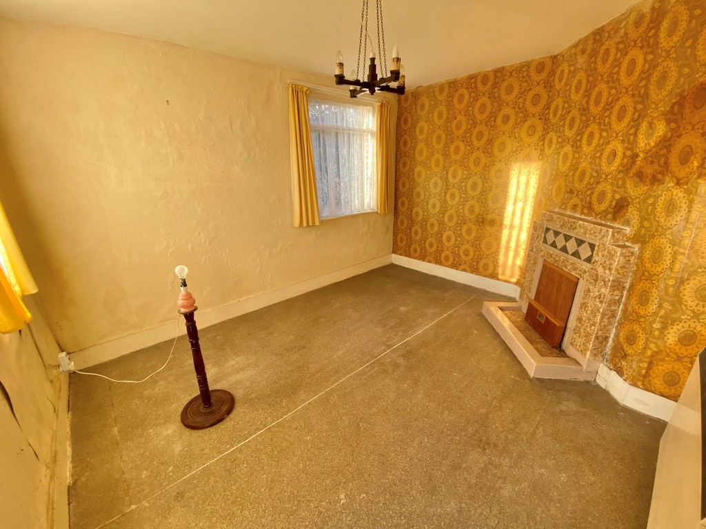 Outside The property is approached from the road via a metal field gate which gives access to a gravelled driveway. The plot amounts to around 0.4 of an acre (STS) and tapers to a point at the rear where this is small copse. The majority of garden is laid to lawn. There is a broken concrete slab where the original garage stood but this has been removed due to its poor condition. There is power and water connected close by in readiness for a replacement garage.