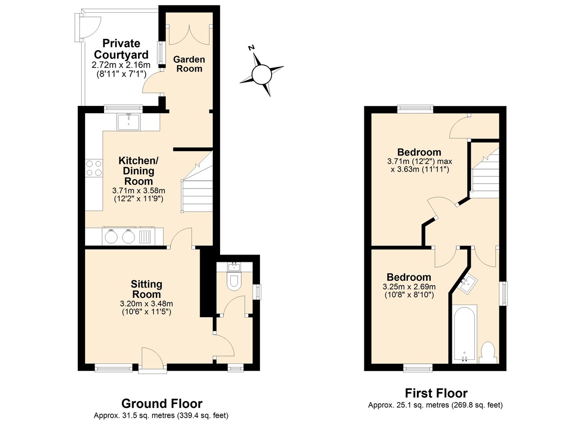 The first floor comprises of a light and spacious landing providing access to 2 double bedrooms. The family bathroom has been upgraded to provide modern tiling and lighting, a 3-piece bathroom suite and shower over bath. Exposed beams and wooden doors with wrought iron thumb latch handles throughout help to create this wonderful character feel within this modern home. A fantastic first purchase.