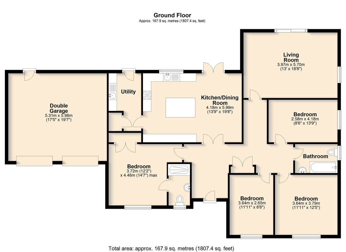 The internal layout has been designed to maximise single storey living with a large living room and an open kitchen/dining room. The kitchen is supplied from Howdens with high quality quartz worktops and integrated appliances such as separate fridge and freezer, induction hob, oven and dishwasher are included. Separate utility and study rooms are provided within the property an essential for modern day living. Plot 2 has a large master bedroom with built in wardrobe and an en-suite shower room. Three other double bedrooms and a family bathroom completes the accommodation on offer. The property will come with a professional building guarantee along with a developer 2 year defects warranty.