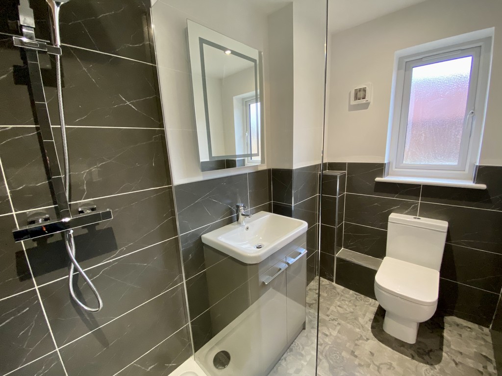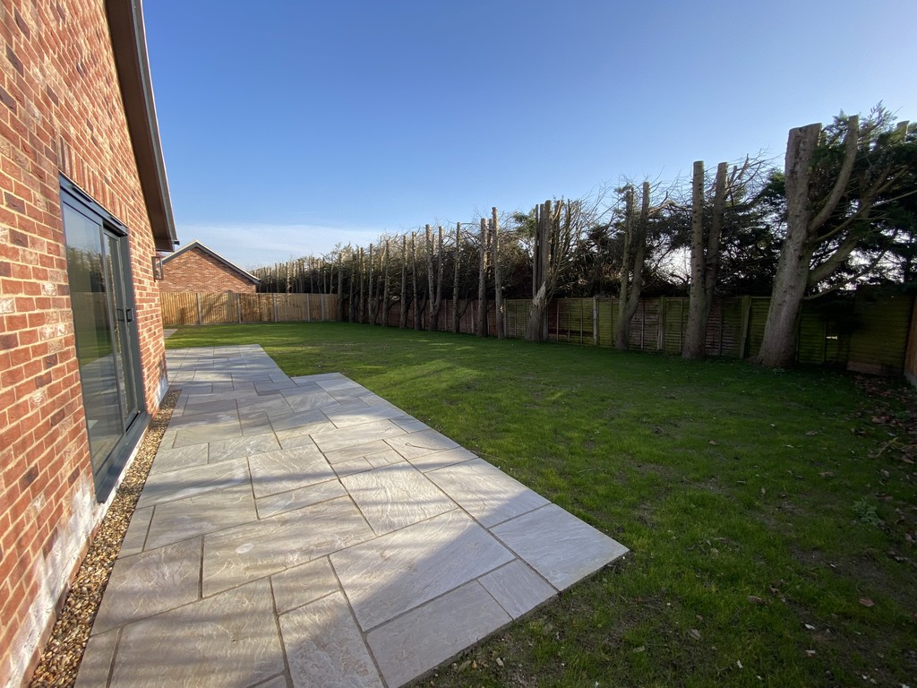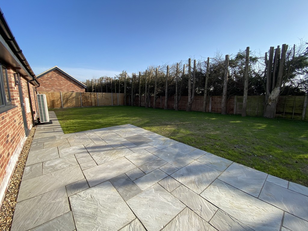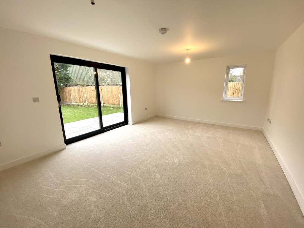 Outside The property is accessed via a shared driveway which leads to all four bungalows offering a private cul-de-sac feel. Plenty of space for parking is available with the addition of a double garage complete with an electric connection and an up and over electric door in black. The large rear garden has an Indian sandstone patio area off the patio doors from the kitchen. The gardens are all levelled and seeded ready for occupation.