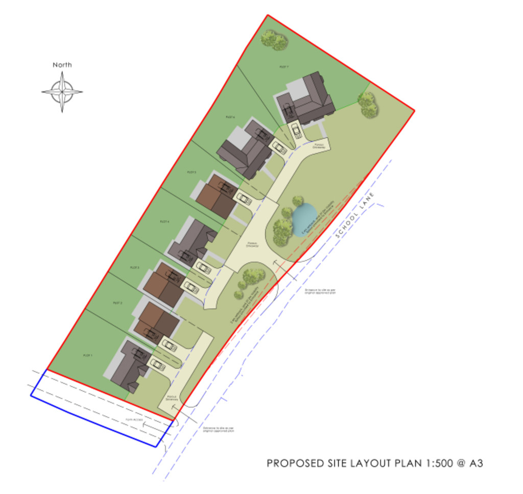 The Site The site is 0.500ha (1.25 acres) (stms) and is set well back from the road through the village accessed off a small country lane. It has the benefit of planning permission for 7.