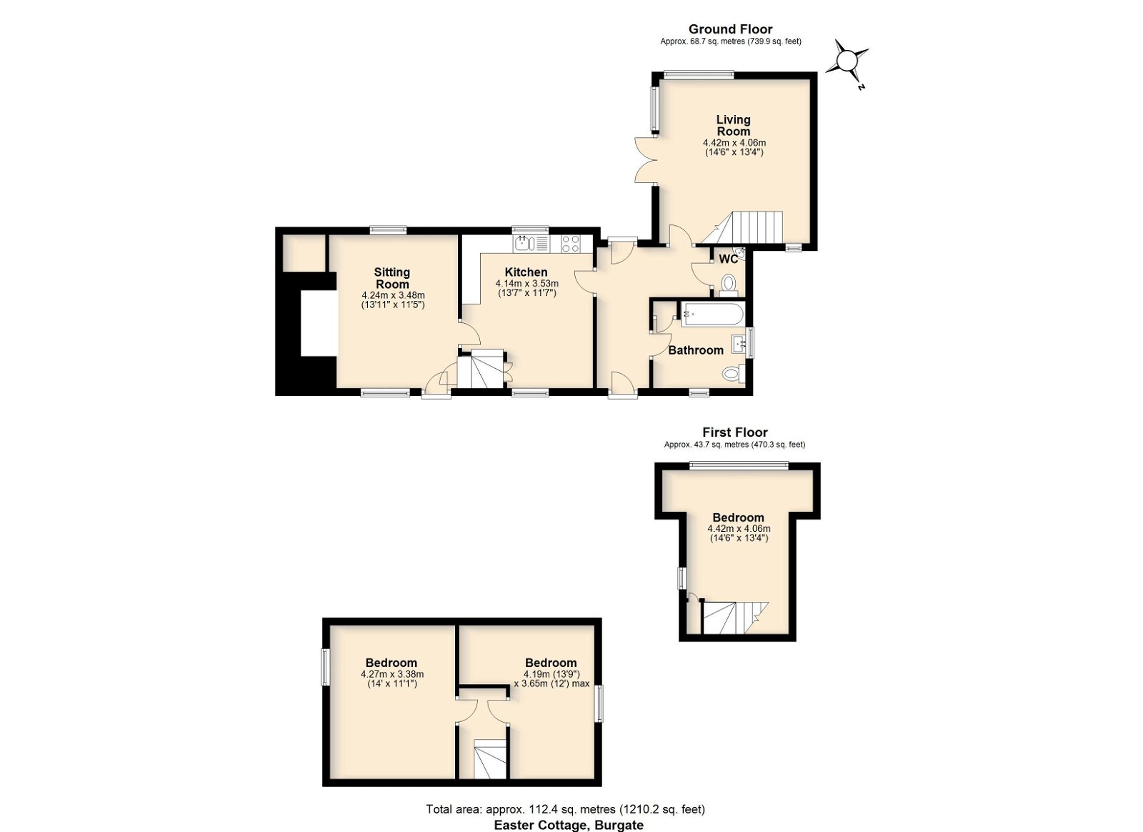 Easter Cottage is set within the picturesque hamlet of Burgate which comprises a number of period homes set back off an area of common land. The location is ideal for those wanting a taste of rural life yet be close to day to day amenities. The nearby village of Botesdale has a small supermarket, doctors, pubs, restaurants and school and there is also a village shop, post office, school and restaurant at nearby Wortham. The bustling market town of Diss is just 6 miles away with a mainline railway station on the Norwich to London Liverpool Street line, a journey taking around 90 minutes. The beautiful Heritage Coast around Southwold, Walberswick and Aldeburgh is around 40 minutes by car.