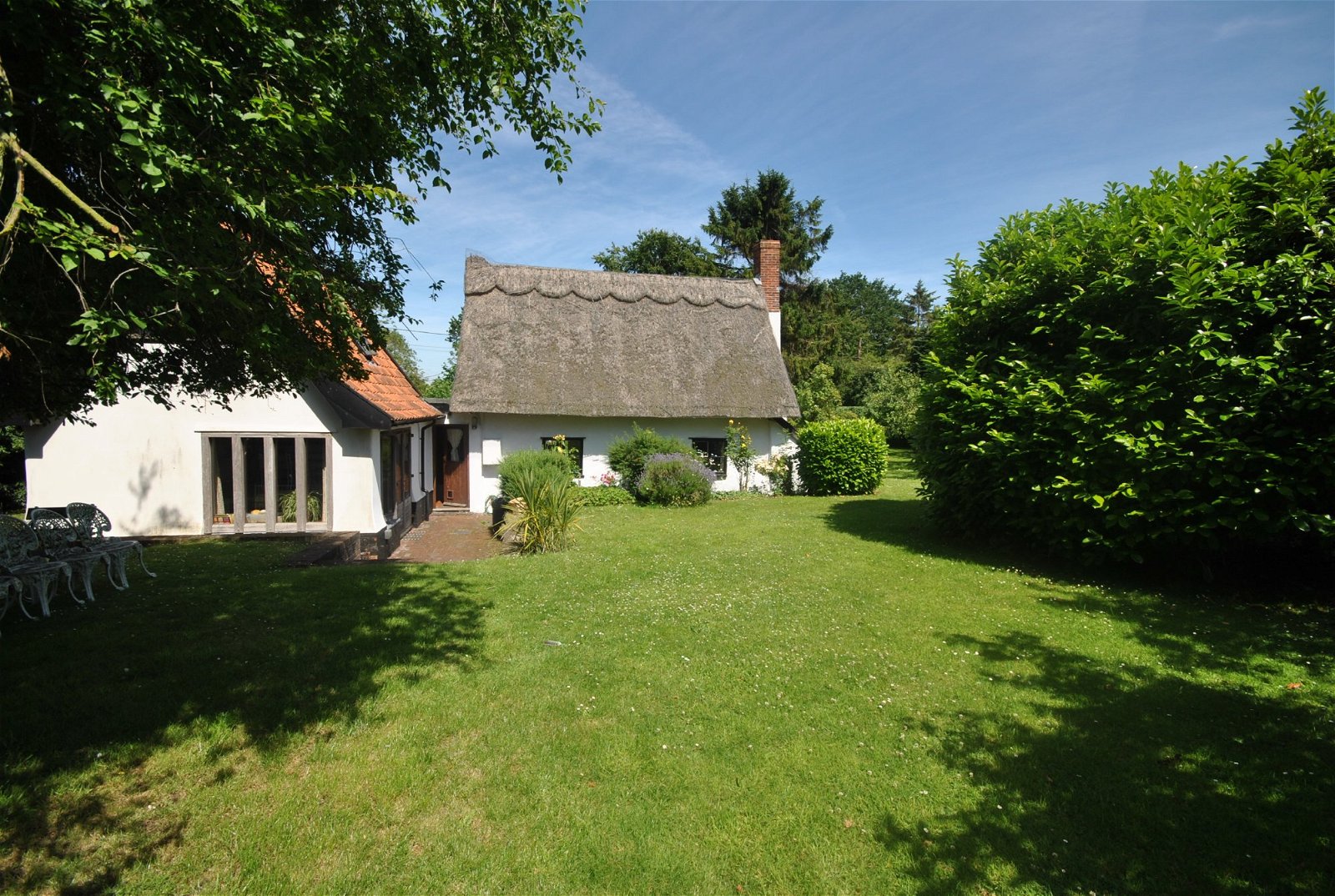 The cottage is set back behind Little Green (an area of Common) and is almost hidden from view from the road. There is a brick outbuilding (21'6 x 11'6) and a summerhouse (10' x 10') both with power connected. There are two parking spaces in front of the outbuilding. The garden is cleverly planned with areas of lawn, an orchard, wild flower area and cottage style flower beds flag the front path. The garden extends to 0.247 ha (0.61ac) but is easy to maintain. In addition, there is a pond and a compost area. The property also has the freehold of the area of Common directly in front of the cottage which amounts to 0.077 ha (0.19ac).