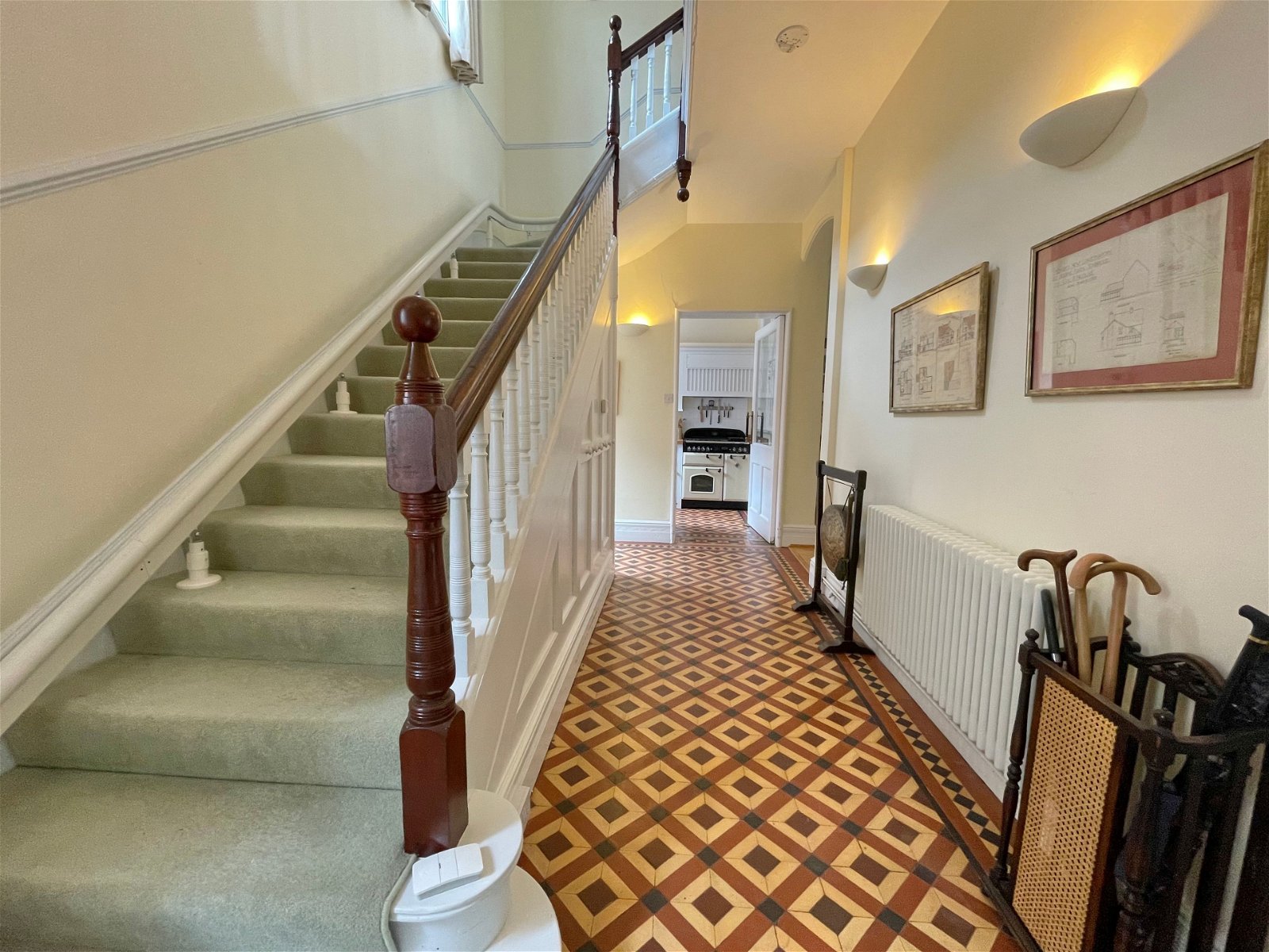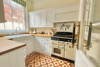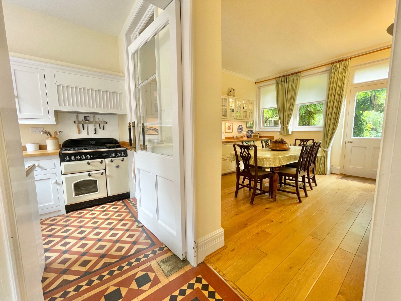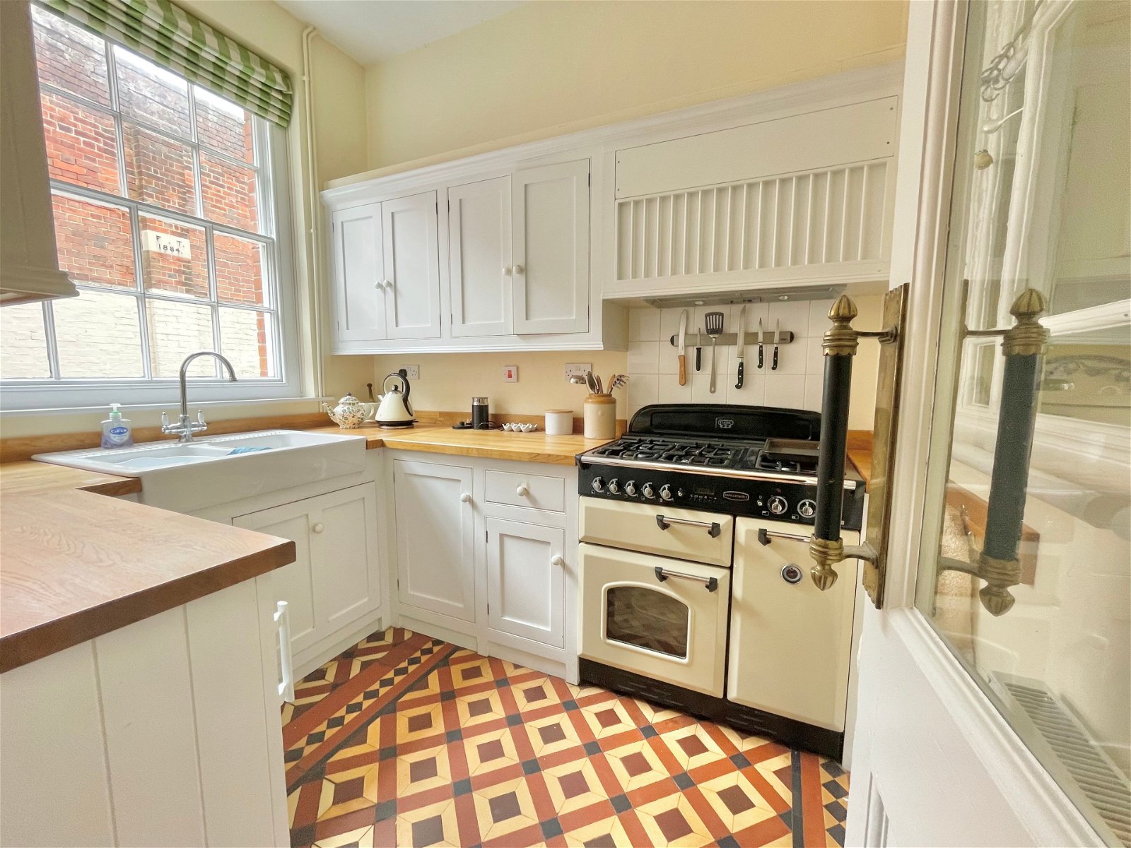 An elegant Victorian mid-terrace house presented in beautiful fashion and boasting a wealth of original features. Listed Grade II, of special architectural and historic interest, the house displays classic Victorian style with tall sash windows, ornate moulded cornicing and period fireplaces in two rooms. The well proportioned and naturally light living space with high ceilings extends to around 2,100 sq.ft. arranged over three floors. Additionally, the extensive cellar provides substantial storage and a useful utility area. A glass panelled front door brings you into a fine hall with a striking encaustic tiled floor and a wide staircase ascending to a galleried landing. The drawing room looks out upon the walled garden with a sash window and French doors opening out onto a patio. Creating a focal point is the Victorian style fireplace. The feature encaustic tiling flows into the dining room which conveniently, is adjacent to the kitchen, an ideal arrangement for meals and entertaining. This is a sunny room with two sash windows and a door opening onto the garden. The kitchen features a a range of cabinets topped by attractive solid wood work surfaces and matching wall units. Ample work surface areas incorporate a double white porcelain sink and drainer unit, space and plumbing for a dishwasher. A full height cellar is naturally lit by a window to ground level. With good head height this offers a useful utility area / store room. Plumbing and space for the washing machine and dryer is in the designated laundry area under the stairwell to the second floor. On the first floor are two generous sized bedrooms and the family bathroom which comprises a contemporary three piece white suite of bath with shower over, hand basin and wc. The master bedroom which looks down upon the walled garden. Bedroom two has a range of fitted wardrobes. On the second floor there is a third bedroom and a study/optional 4th bedroom. These two rooms offer fine rooftop views over the town centre.