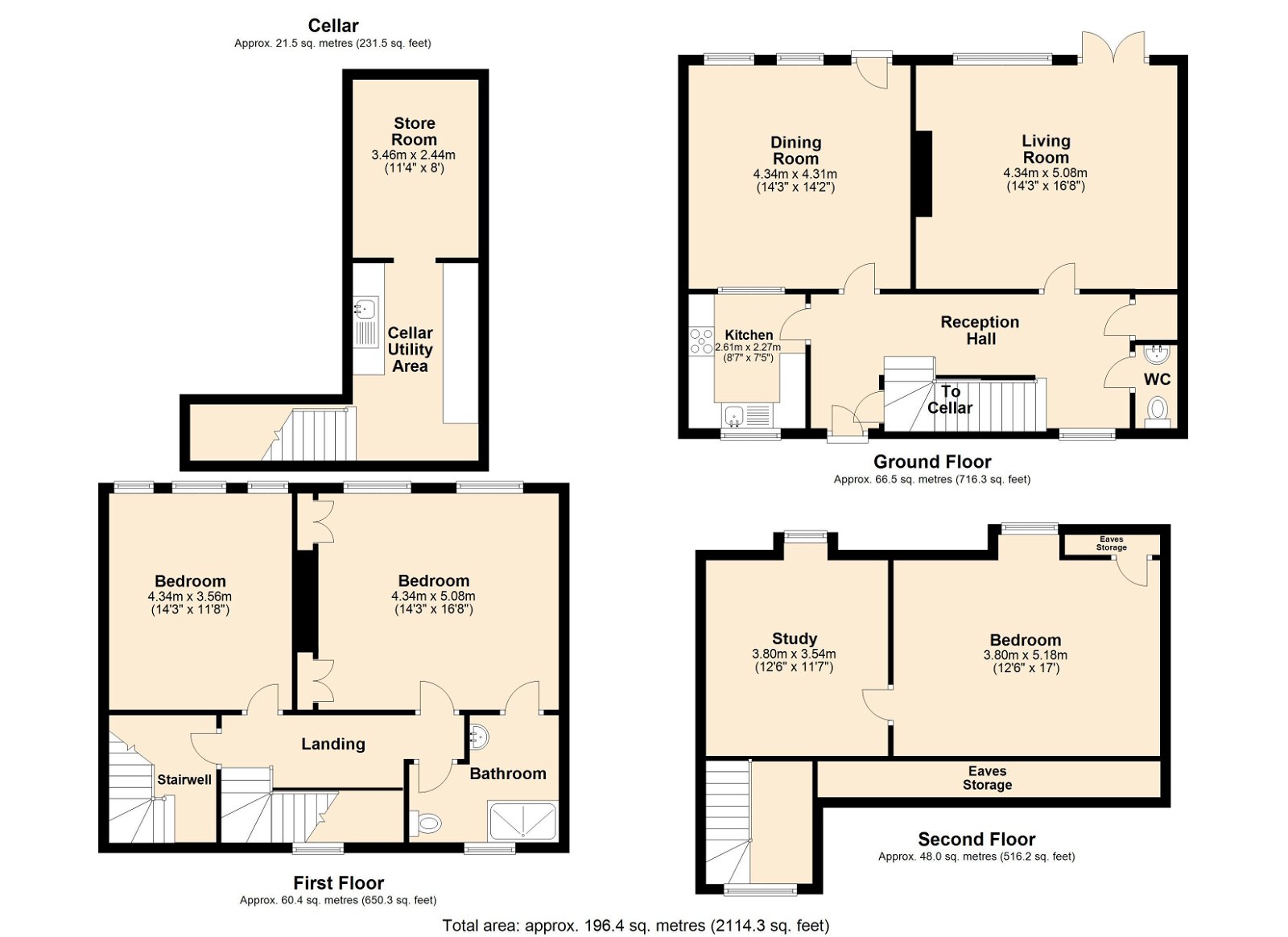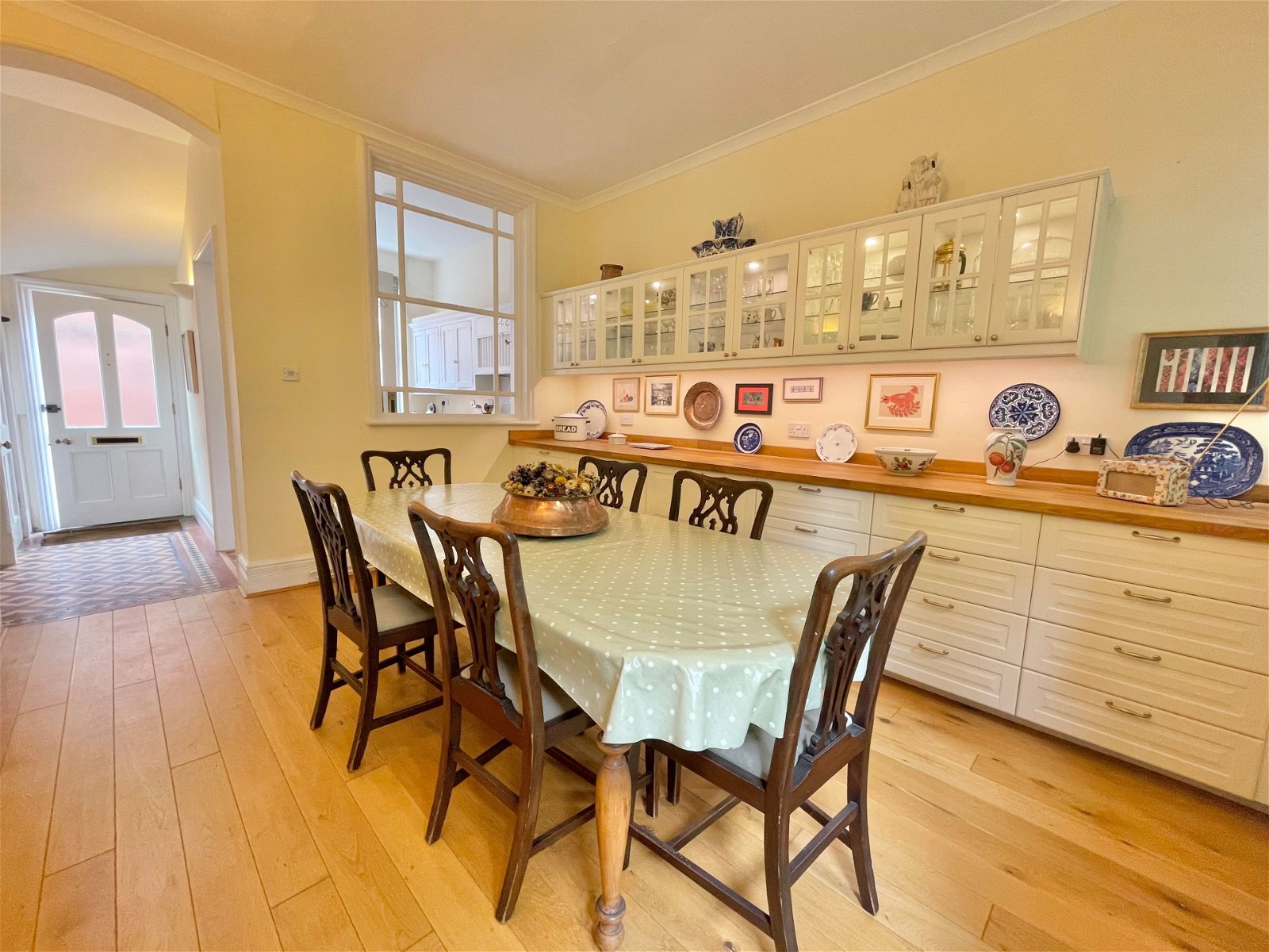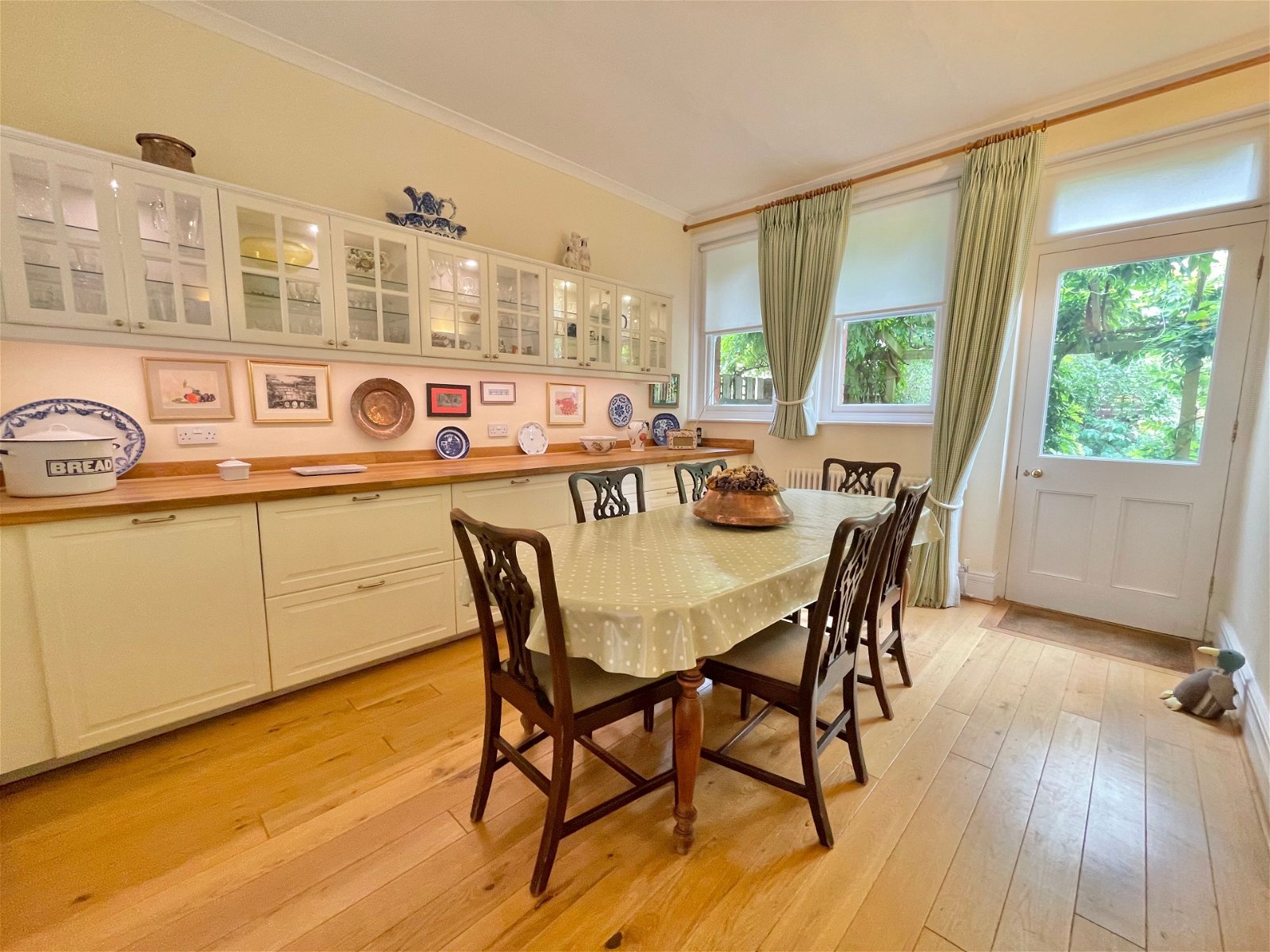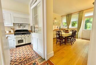 An elegant Victorian mid-terrace house presented in beautiful fashion and boasting a wealth of original features. Listed Grade II, of special architectural and historic interest, the house displays classic Victorian style with tall sash windows, ornate moulded cornicing and period fireplaces in two rooms. The well proportioned and naturally light living space with high ceilings extends to around 2,100 sq.ft. arranged over three floors. Additionally, the extensive cellar provides substantial storage and a useful utility area. A glass panelled front door brings you into a fine hall with a striking encaustic tiled floor and a wide staircase ascending to a galleried landing. The drawing room looks out upon the walled garden with a sash window and French doors opening out onto a patio. Creating a focal point is the Victorian style fireplace. The feature encaustic tiling flows into the dining room which conveniently, is adjacent to the kitchen, an ideal arrangement for meals and entertaining. This is a sunny room with two sash windows and a door opening onto the garden. The kitchen features a a range of cabinets topped by attractive solid wood work surfaces and matching wall units. Ample work surface areas incorporate a double white porcelain sink and drainer unit, space and plumbing for a dishwasher. A full height cellar is naturally lit by a window to ground level. With good head height this offers a useful utility area / store room. Plumbing and space for the washing machine and dryer is in the designated laundry area under the stairwell to the second floor. On the first floor are two generous sized bedrooms and the family bathroom which comprises a contemporary three piece white suite of bath with shower over, hand basin and wc. The master bedroom which looks down upon the walled garden. Bedroom two has a range of fitted wardrobes. On the second floor there is a third bedroom and a study/optional 4th bedroom. These two rooms offer fine rooftop views over the town centre.