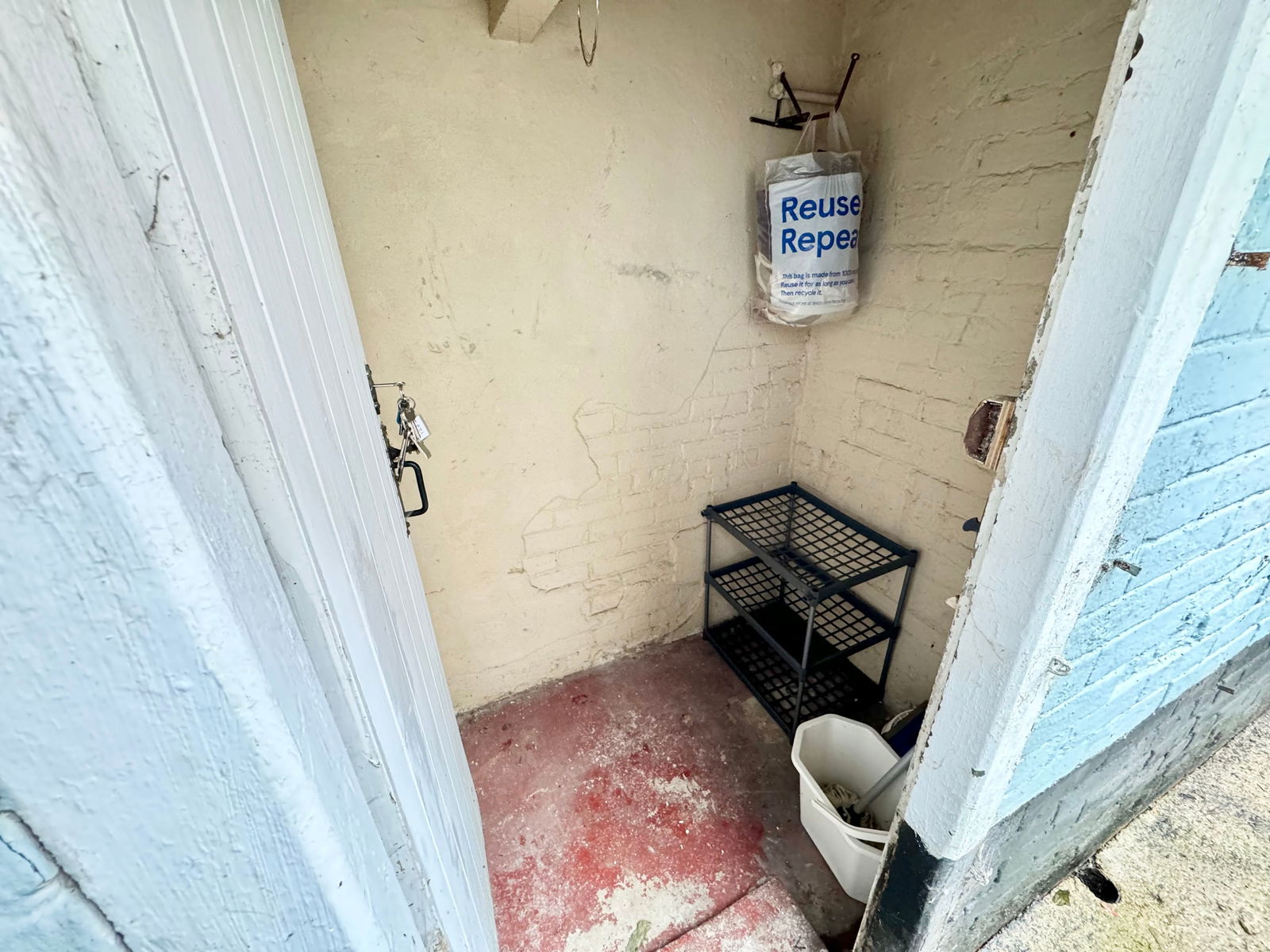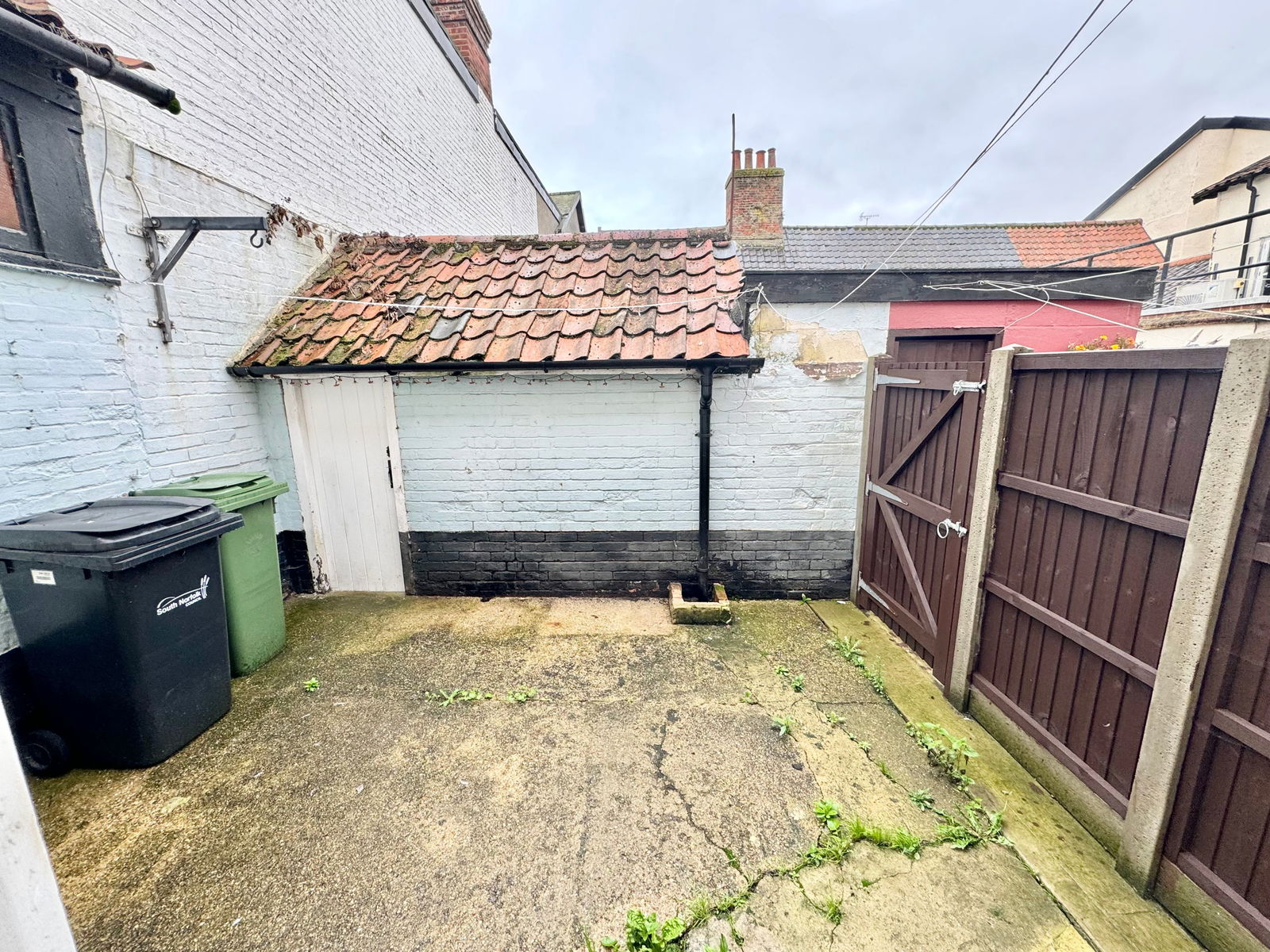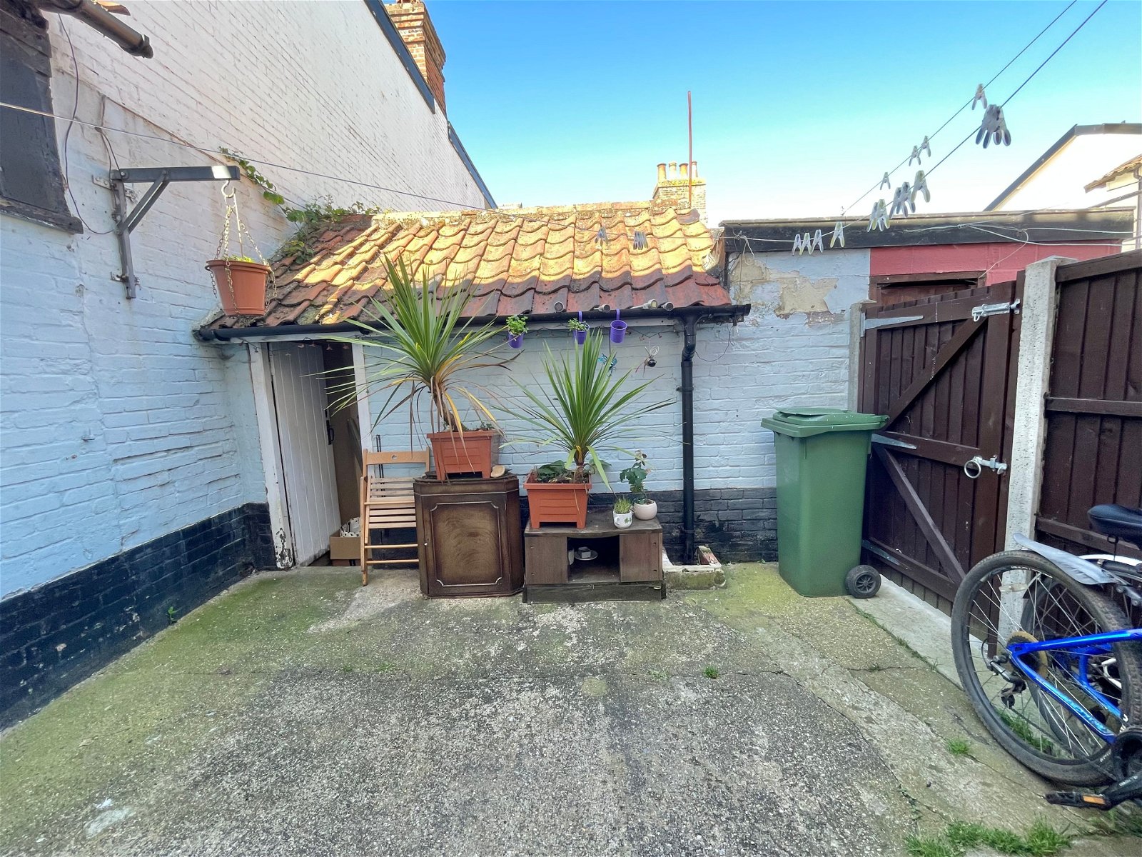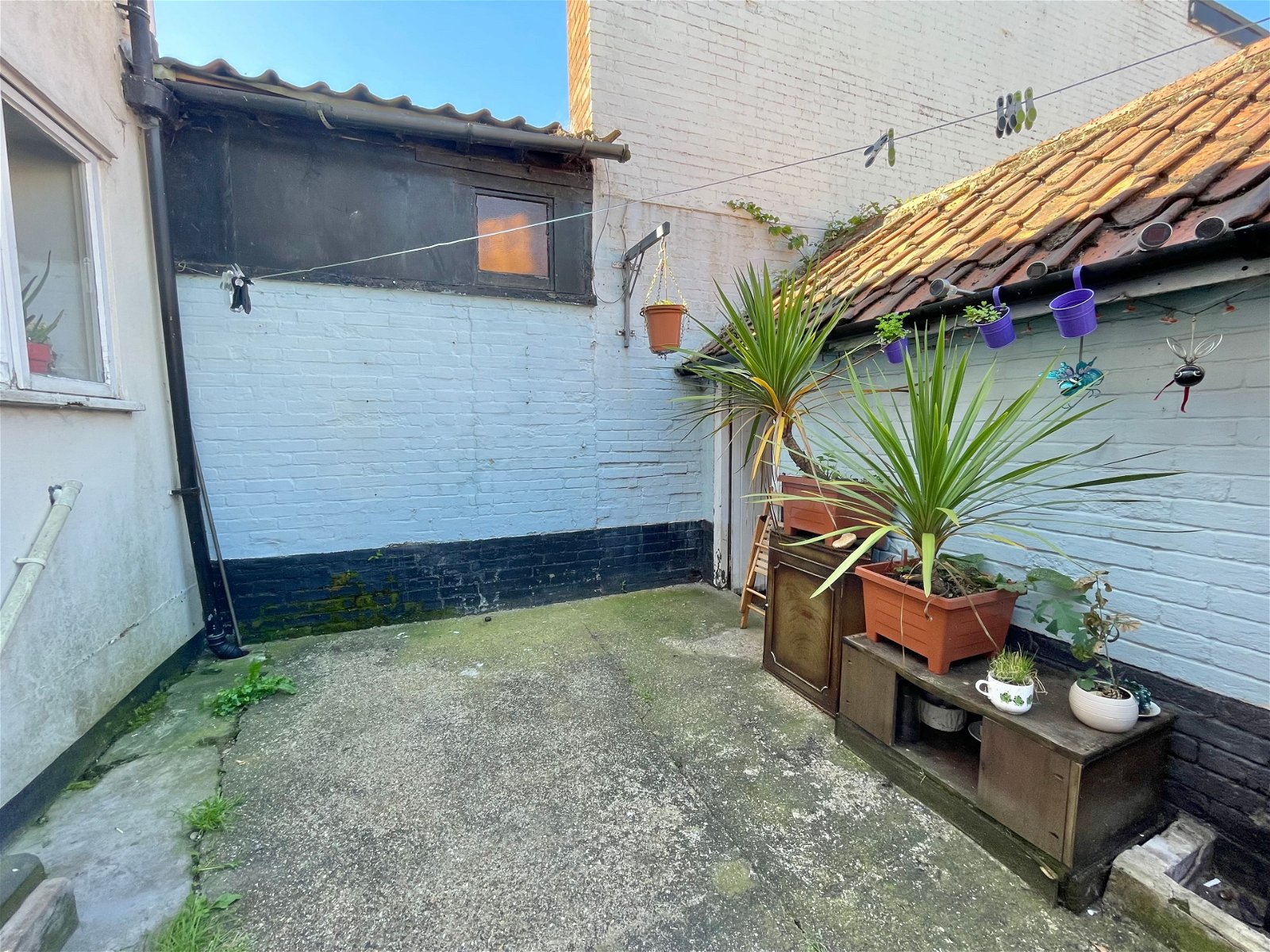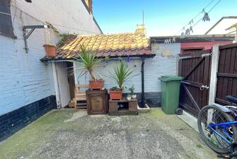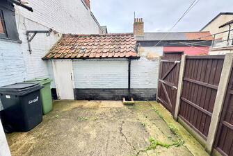 There is an enclosed courtyard at the rear with space for a patio table and chairs. There is a small storage outbuilding.