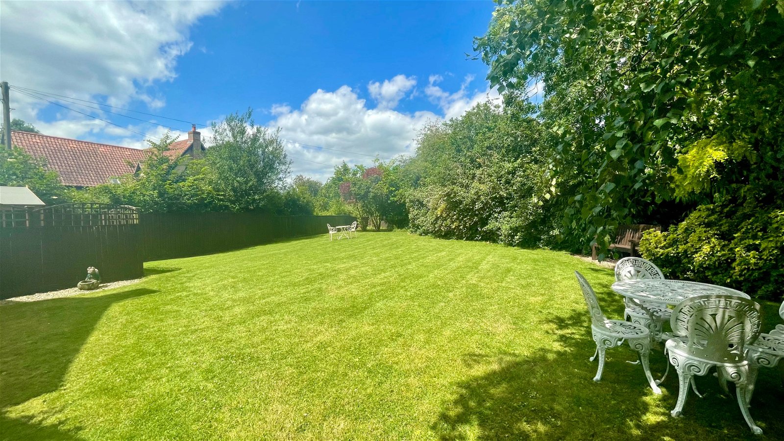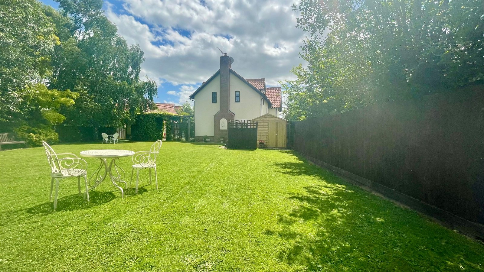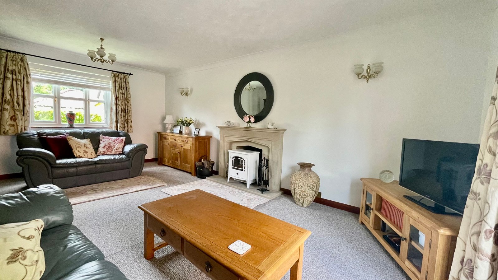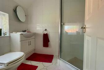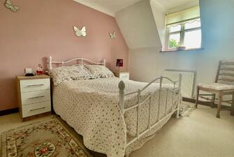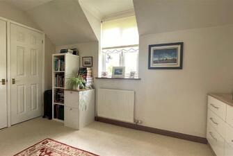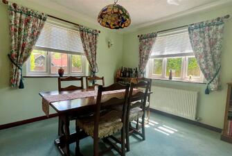 Set back from the road, the property is accessed via a large shingle driveway providing ample off-road parking and leading to a single garage with an up-and-over door. The generous rear gardens are mostly laid to lawn and include a large patio area for alfresco dining, three garden sheds, and a large wood store, all enclosed by panel fencing and attractive hedging.