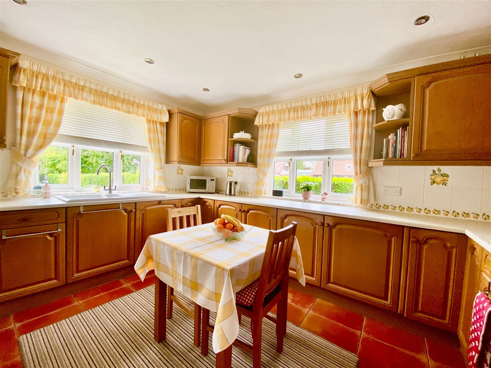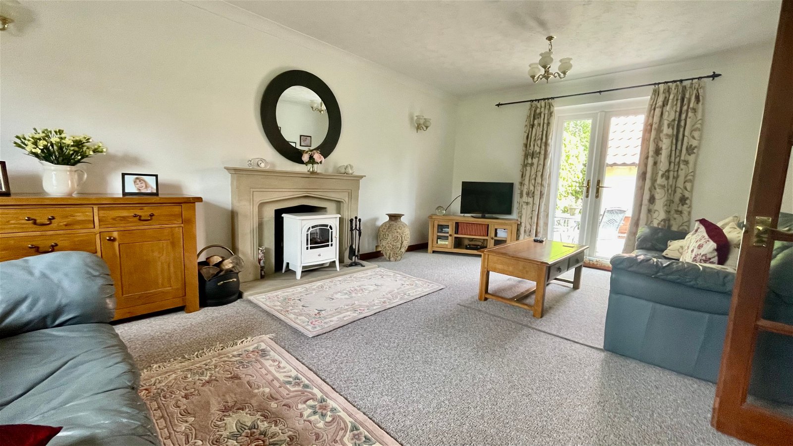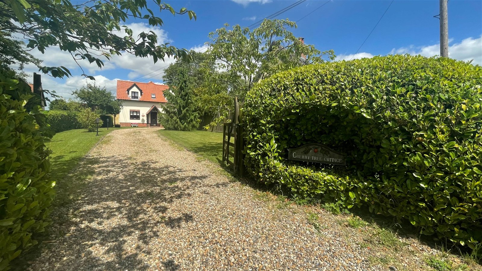 Set back from the road, the property is accessed via a large shingle driveway providing ample off-road parking and leading to a single garage with an up-and-over door. The generous rear gardens are mostly laid to lawn and include a large patio area for alfresco dining, three garden sheds, and a large wood store, all enclosed by panel fencing and attractive hedging.