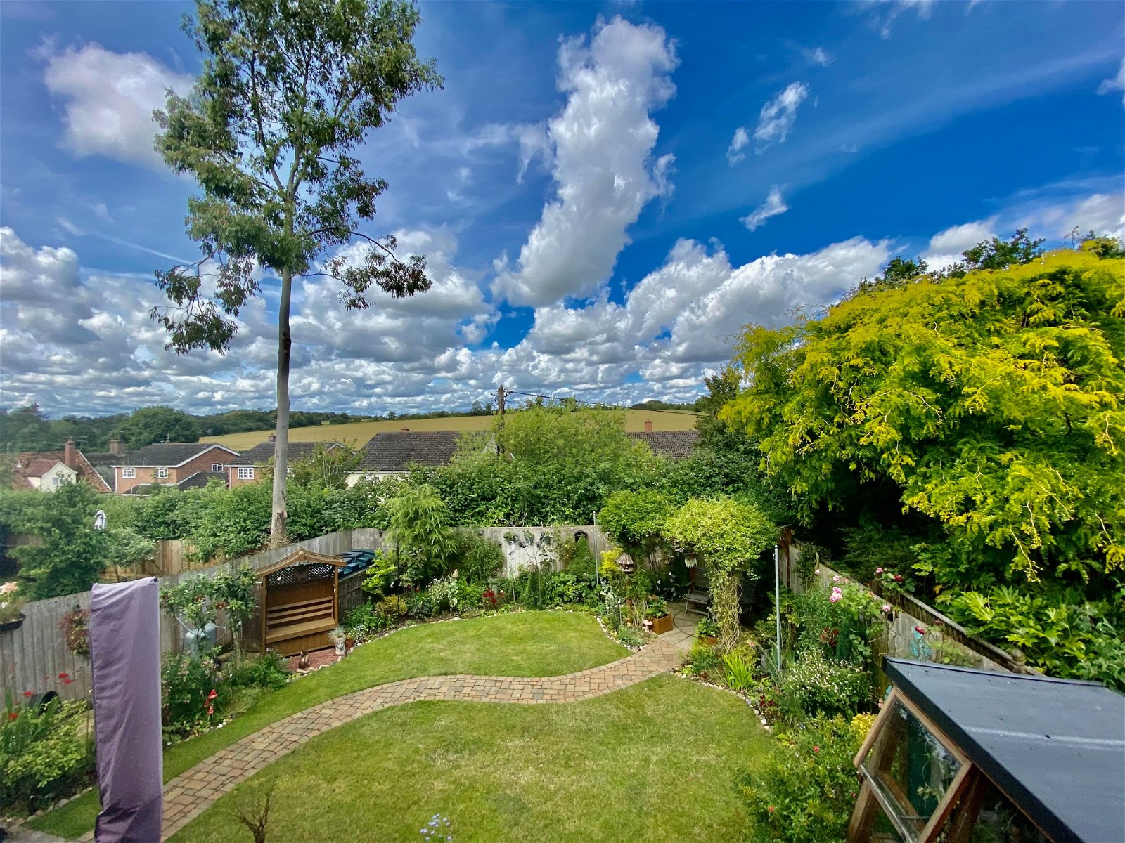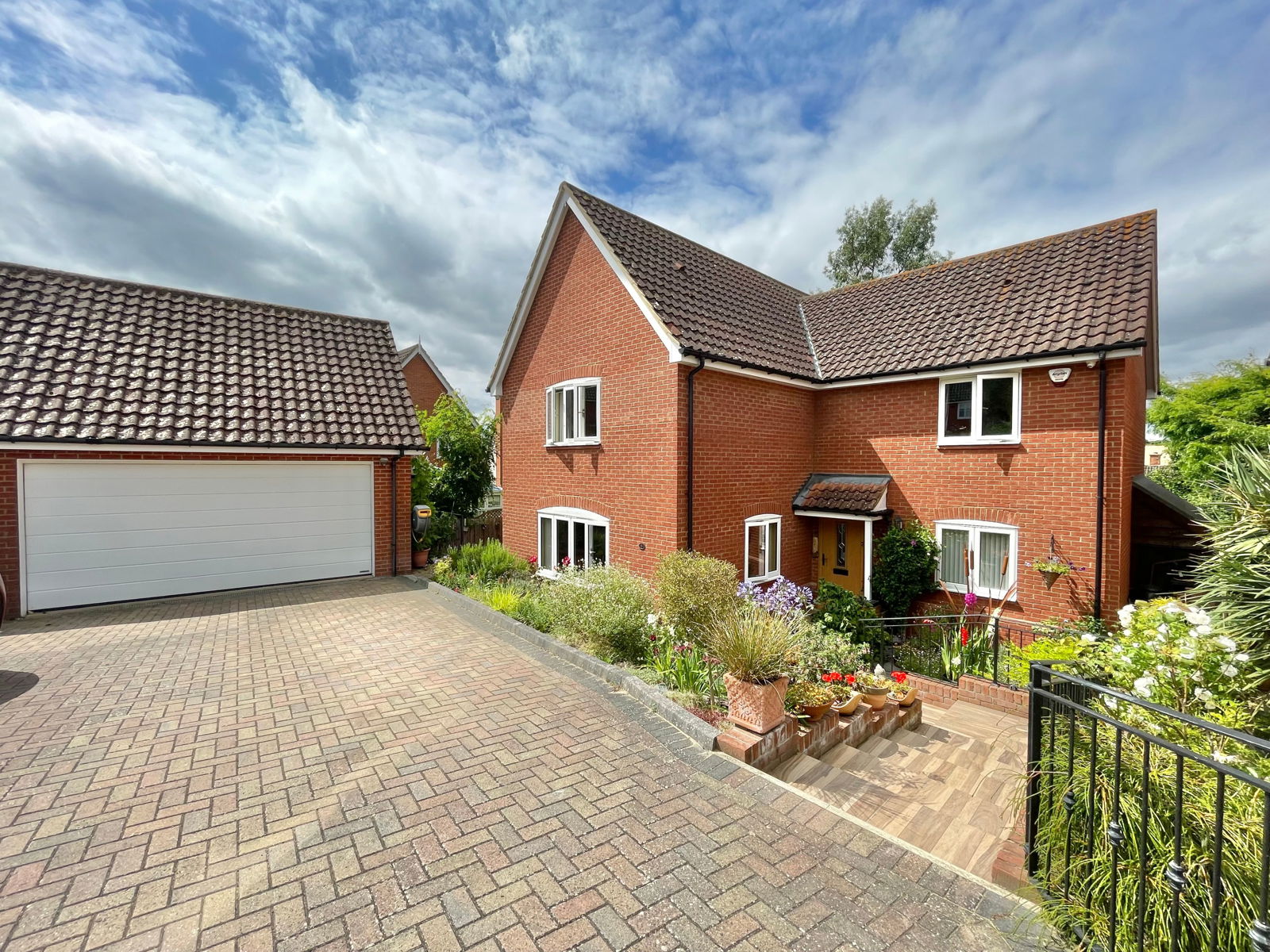 Nestled in a charming cul-de-sac within an exceptionally well-served Suffolk village, this property features beautifully landscaped gardens and offers stunning elevated views of the rolling countryside from the first-floor rear bedrooms. The immaculately presented accommodation includes a spacious reception hall, a square-shaped lounge with a charming inglenook furnished with a wood burner, a study, a large open plan kitchen/diner with two sets of French doors opening out on to the rear patio and a useful separate utility room. Upstairs, a spacious galleried landing leads off to four bedrooms, two of which are en-suites, built-in wardrobes in the bedrooms, and in addition to this there is a well equipped family bathroom completing the accommodation . All rooms are equipped with telephone points and aerial sockets.