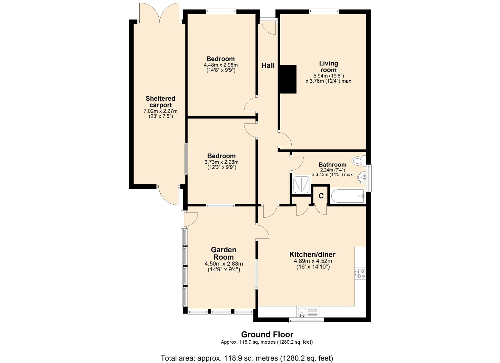 The bungalow offers the best of both worlds - just a short walk into town centre, yet enjoying a 'countryside feel', with decent size garden and views beyond the rear boundary. The property is positively deceptive in terms of its overall size, with the accommodation amounting to around 1100 sq.ft. The 19' living room has a wood burner, whilst the kitchen/diner has plenty of good space to dine and faces onto the rear garden.