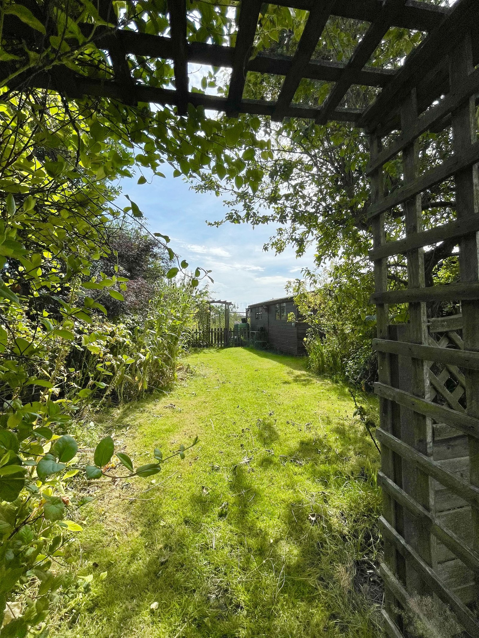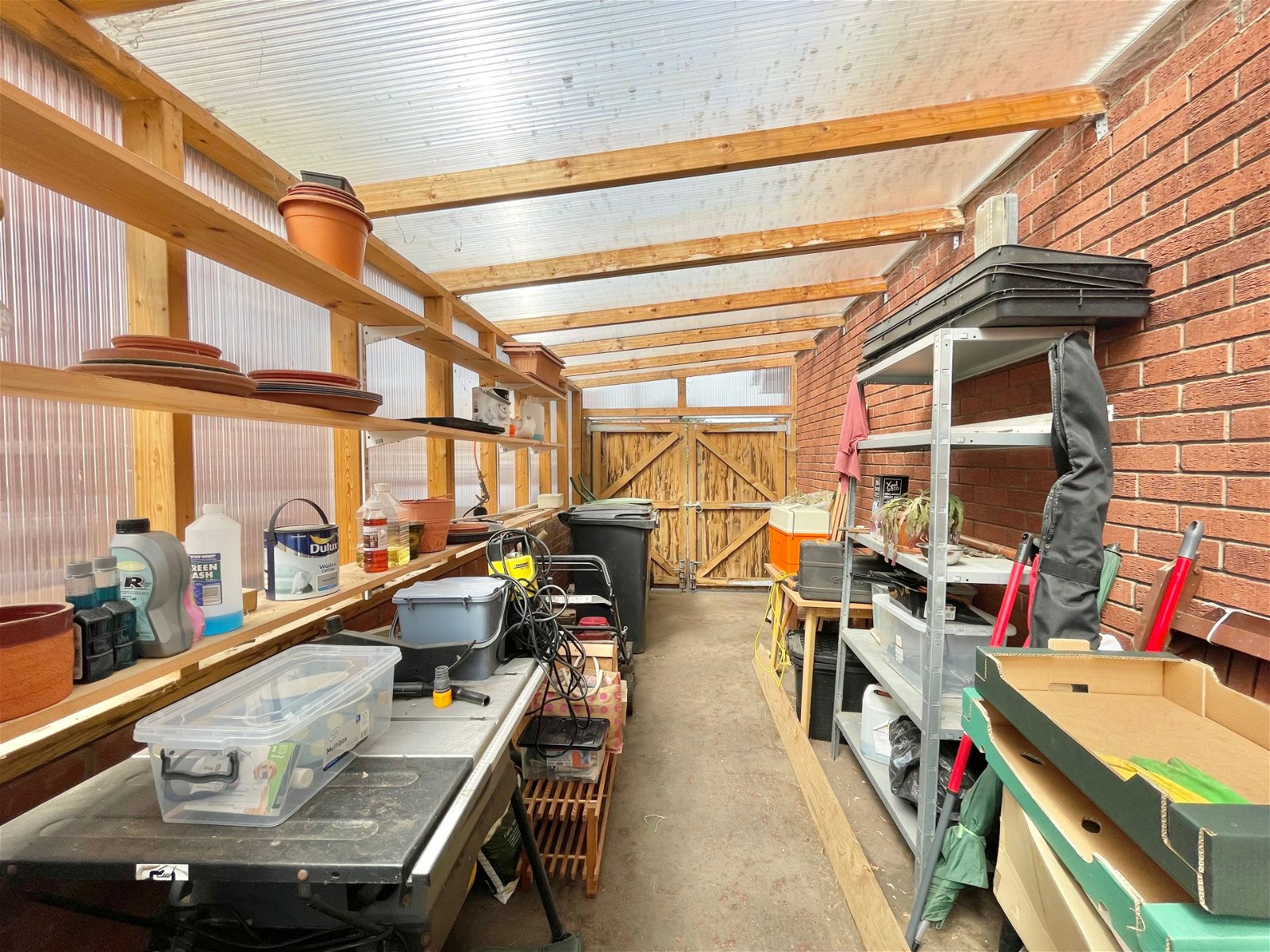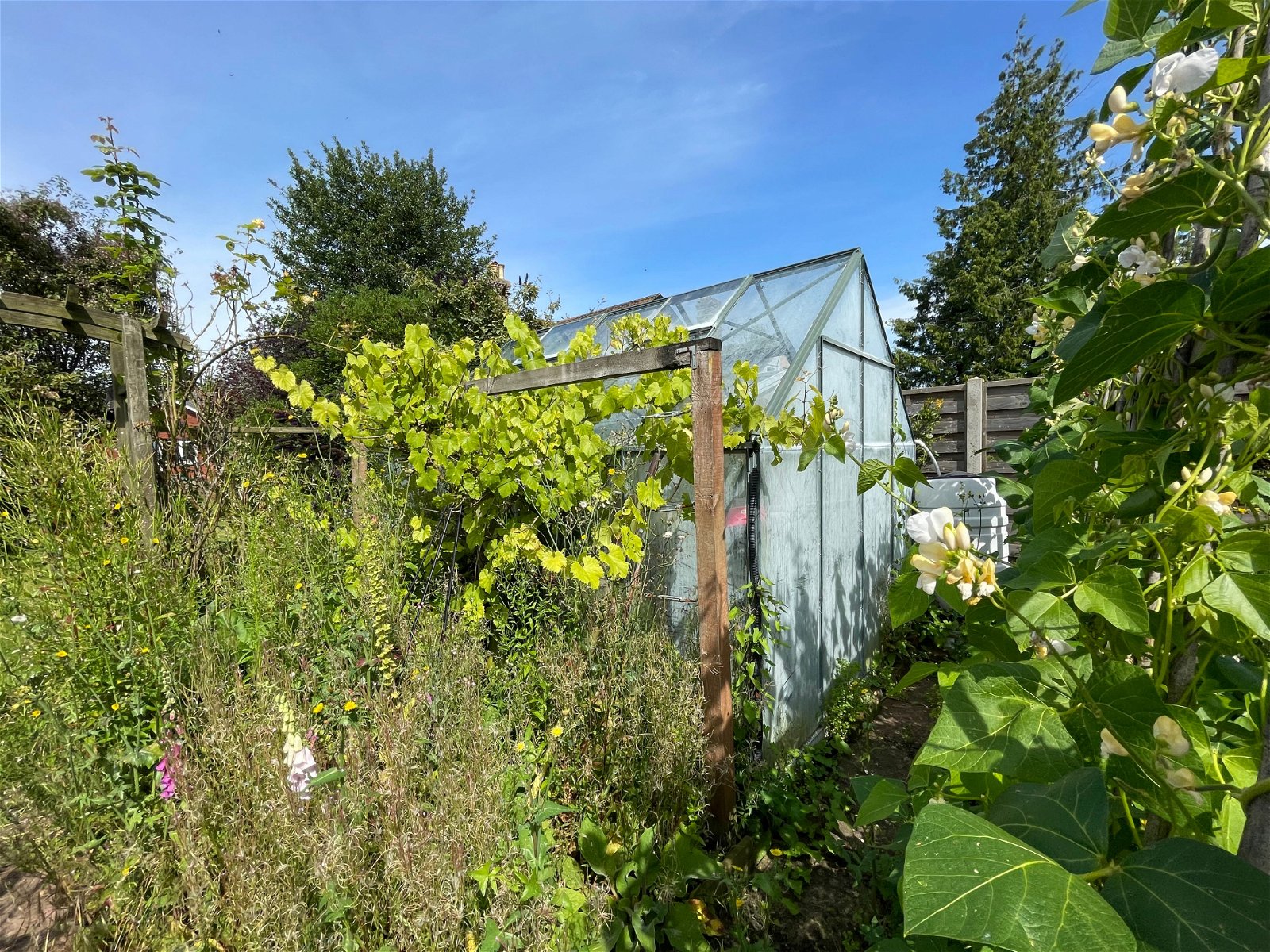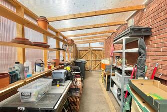 The driveway to front allows parking for two/three vehicles, with storage space to the side in the shape of an enclosed car port, with access gates to front and rear. The rear garden is a real gem, with sections of lawn, patio and vegetable garden at the far end, with views beyond. There is also a raised pond (empty), wooden store shed and green house.