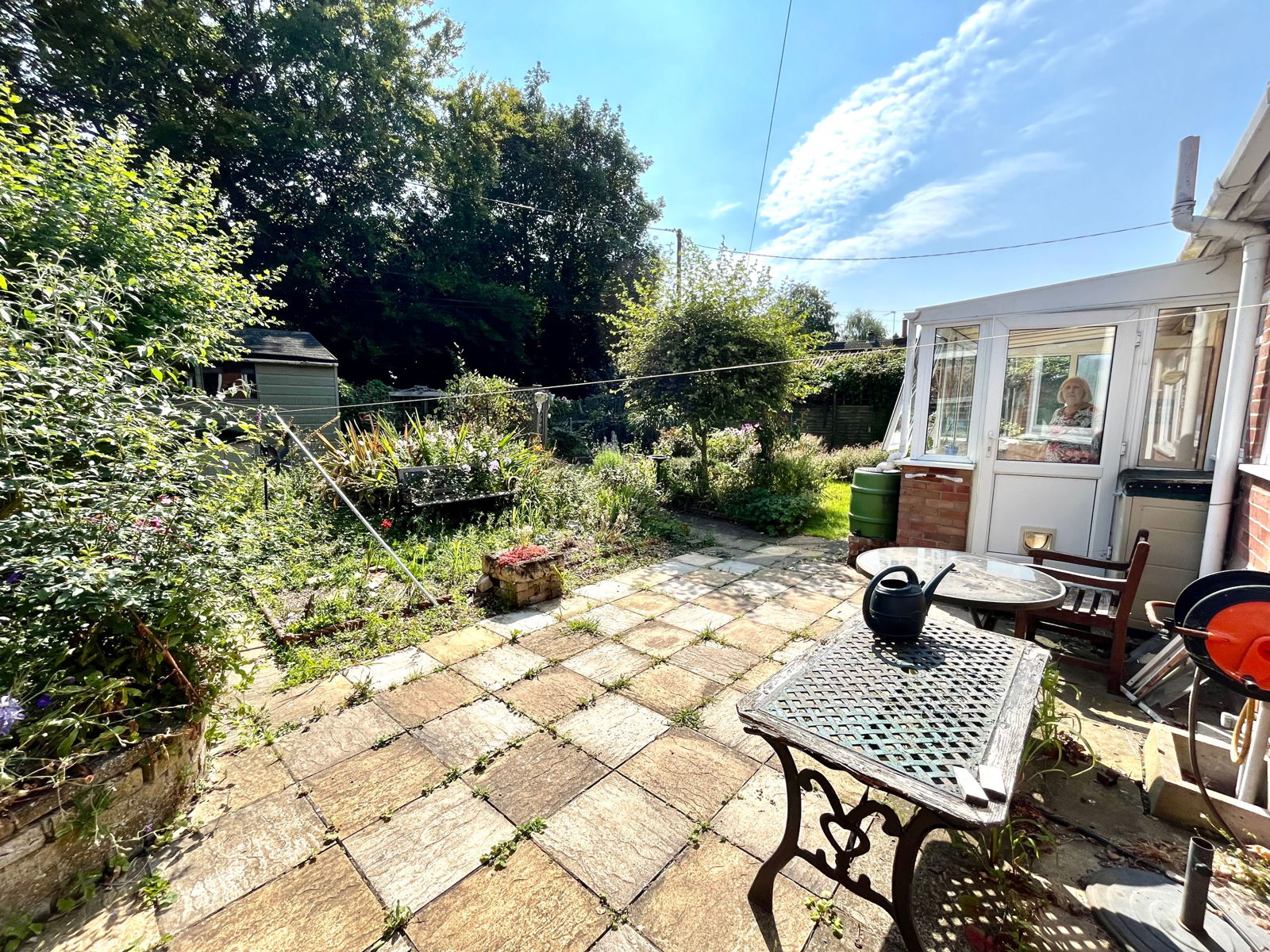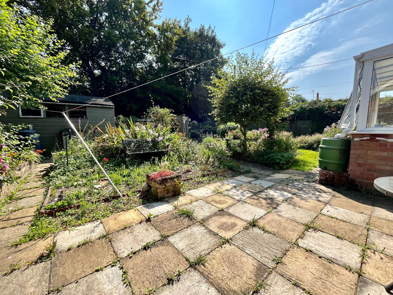 To the front of the bungalow, there is a driveway providing off-road parking and access to the garage, ensuring ample space for vehicles. The rear of the property features a well-stocked and mature garden, beautifully landscaped with several seating areas, perfect for relaxation and outdoor entertaining.