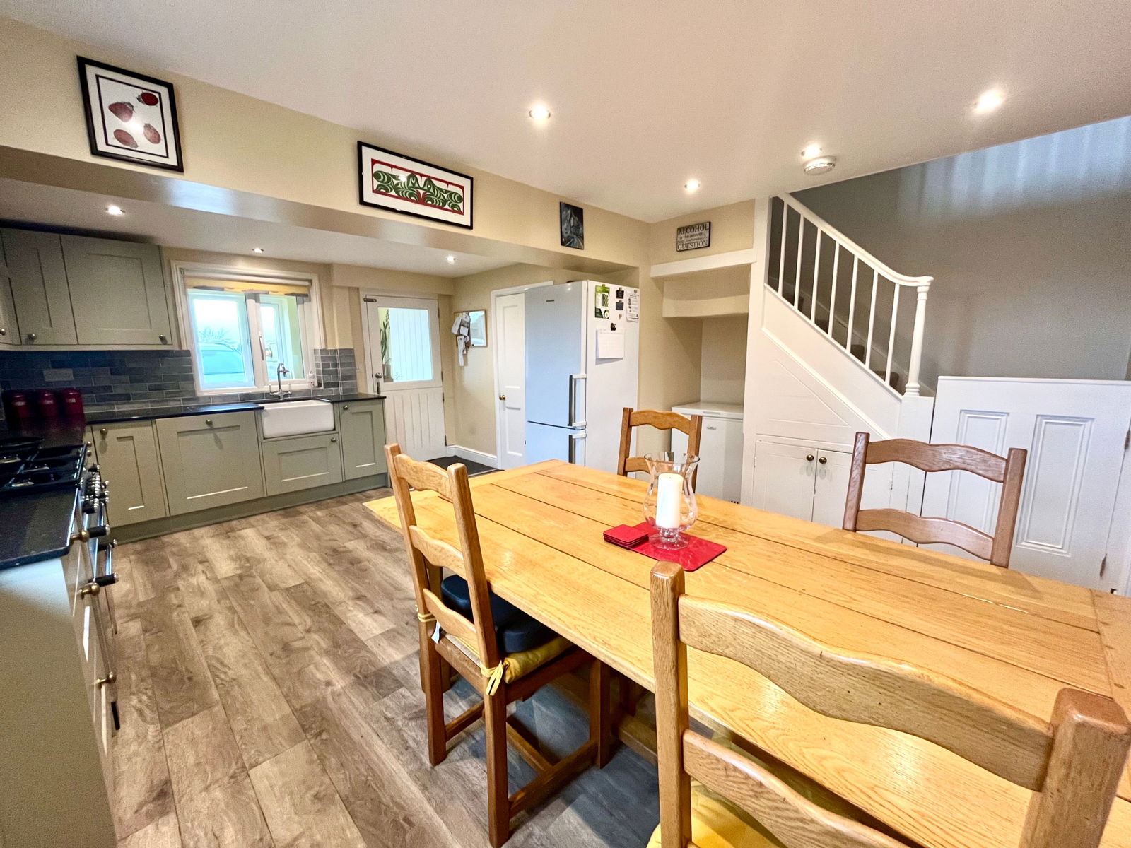 This charming three-bedroom character cottage offers a blend of traditional features and modern conveniences, set against the backdrop of stunning, far-reaching field views. The property boasts a cosy lounge with a wood-burner, feature fireplace and patio doors leading to the rear garden. The spacious kitchen includes ample storage and a practical pantry/utility area. Additional ground floor features include a convenient boot room and W.C. Upstairs, the main bedroom enjoys dual aspect field views and built-in wardrobes, complemented by two further bedrooms and a large, stylish shower room. This idyllic rural retreat combines comfort with countryside living, making it a rare and attractive find.