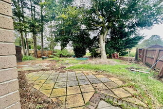 The property has a shingle driveway which offers parking leading up to the double garage. Steps lead up to the front door and round to the side of the property. The rear garden is mainly laid to lawn with mature trees and offers views out to open fields to the rear.