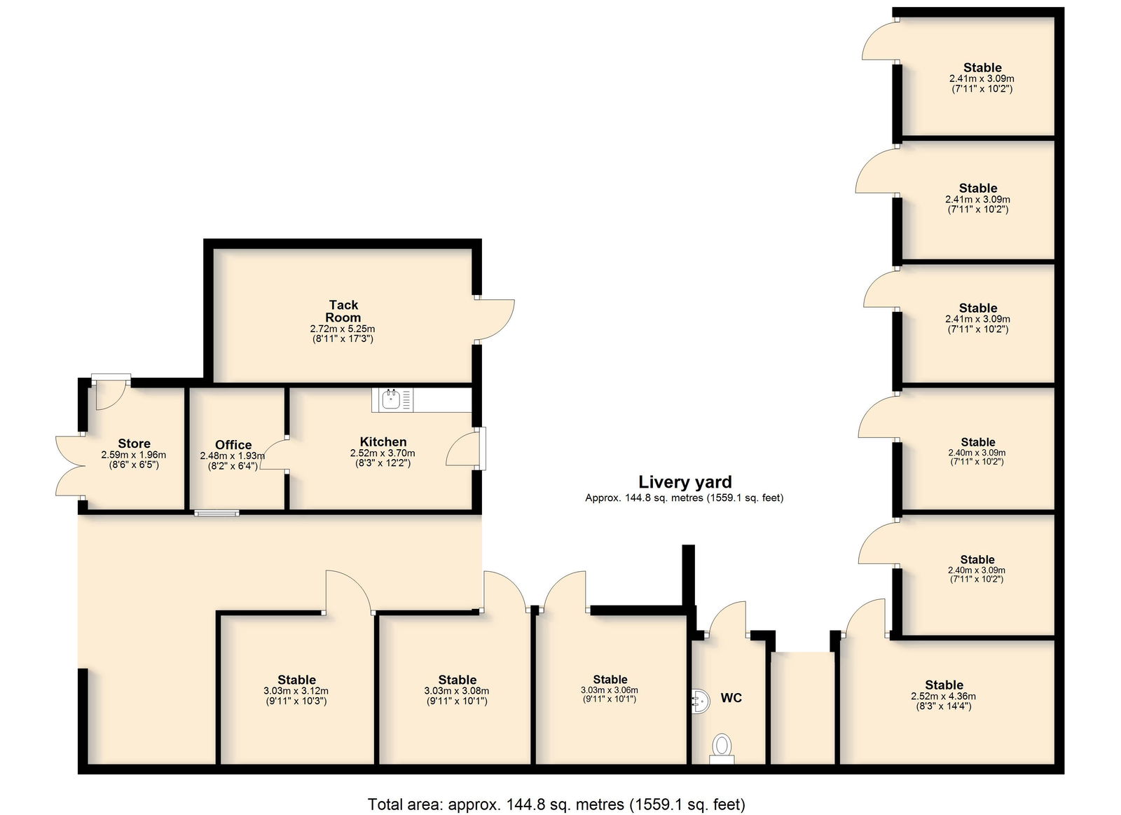 An exceptional equestrian facility offering a perfect blend of functionality and charm. This well-appointed property features open stabling for comfortable horse accommodation, a spacious hay store, and a versatile former shop/café, ideal for hosting events or providing refreshments. The dedicated schooling area ensures an optimal environment for training, while the expansive yard facilitates easy movement and care for your equine companions. With ample parking for several vehicles, this delightful riding school promises convenience and accessibility.
