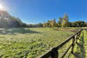 Nestled within a picturesque landscape, this expansive 17.8 ( approx.) -acre estate features, lush grasslands, and secure fenced paddocks, ideal for equestrian enthusiasts or livestock. This remarkable land offers endless possibilities for outdoor recreation, landscaping, or simply enjoying the serenity of nature. An exceptional opportunity for those seeking a rural haven with the perfect blend of open space and natural beauty. The property features a spacious driveway that accommodates several cars, ensuring ample parking for residents and guests. The immediate garden is bordered by attractive post and rail fencing, providing a charming entrance and offering stunning views over the paddocks.