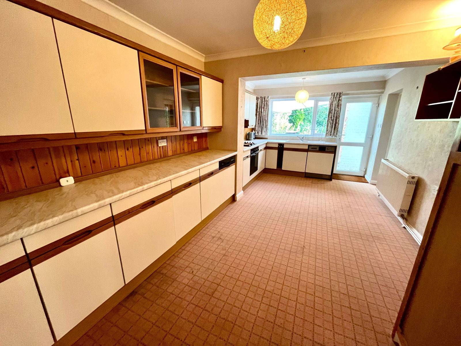 Situated on a generous corner plot, this extended three-bedroom detached bungalow offers spacious accommodation throughout, presenting an excellent opportunity for those looking to update and personalize their ideal home. The property features a welcoming entrance porch, leading into a bright and airy living space. The large kitchen provides ample room for cooking and dining, while the dual-aspect lounge floods the room with natural light. The home also benefits from a second reception room, perfect for a variety of uses, which opens into a conservatory that overlooks the mature, well-established rear garden. There are three well-proportioned bedrooms, with the family bathroom and a separate WC offering additional convenience.