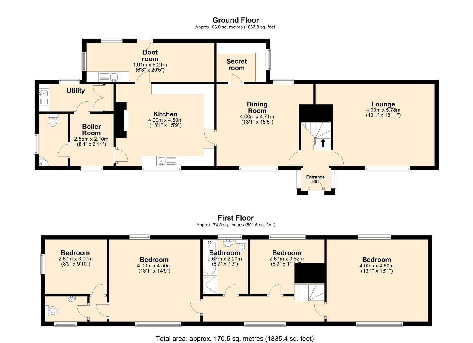 Mains water and electricity are connected to the property. Oil Boiler provides the central heating. Private Drainage.