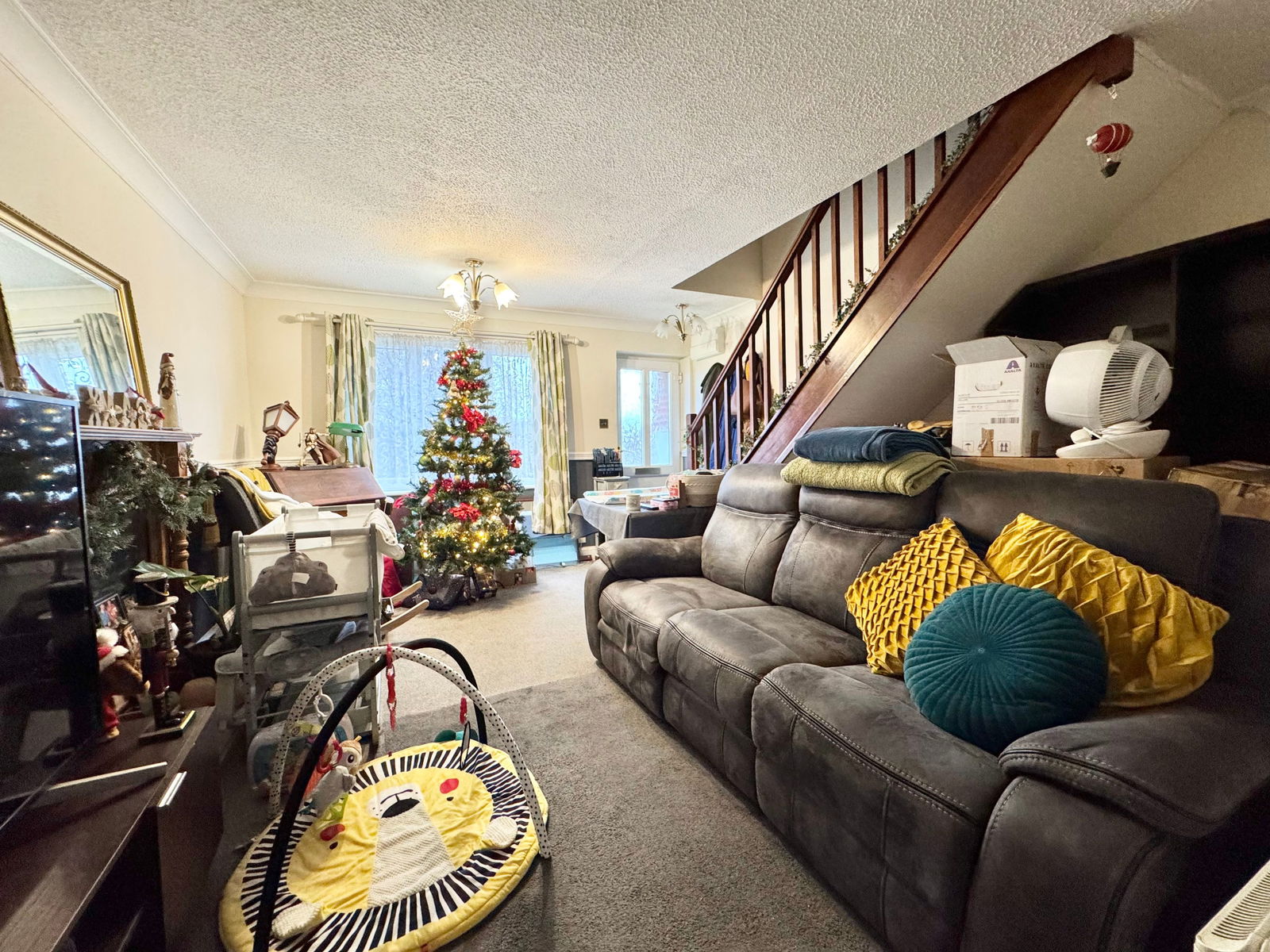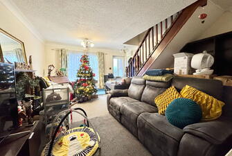 From the front the property is accessed via a footpath across a communal green area, and to the rear is a small terraced garden with paved patio area.