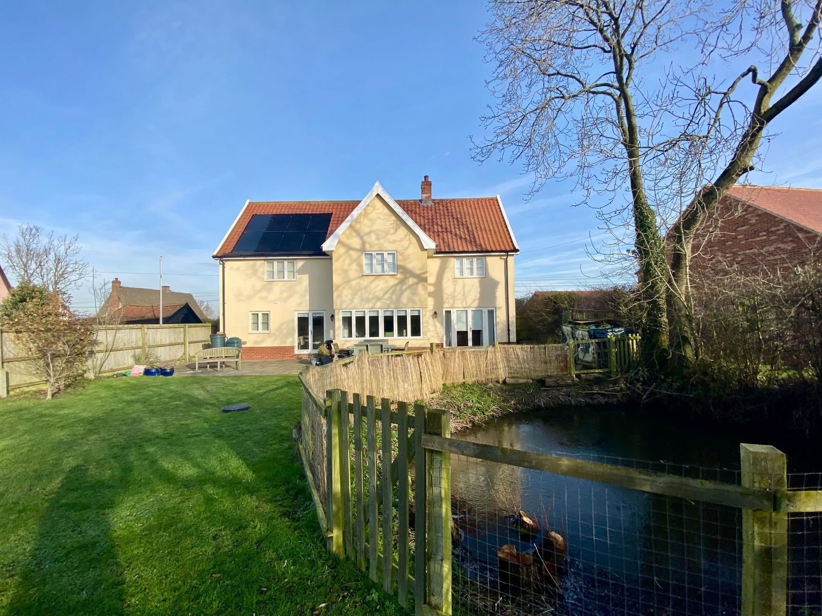 Mains Water and electricity are connected to the property. Heating is provided via an air source heat pump installed when the property was built in 2015.