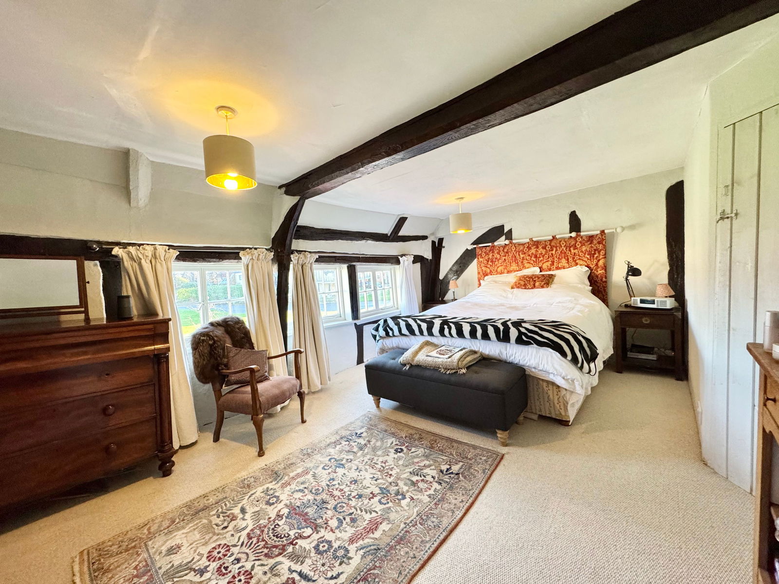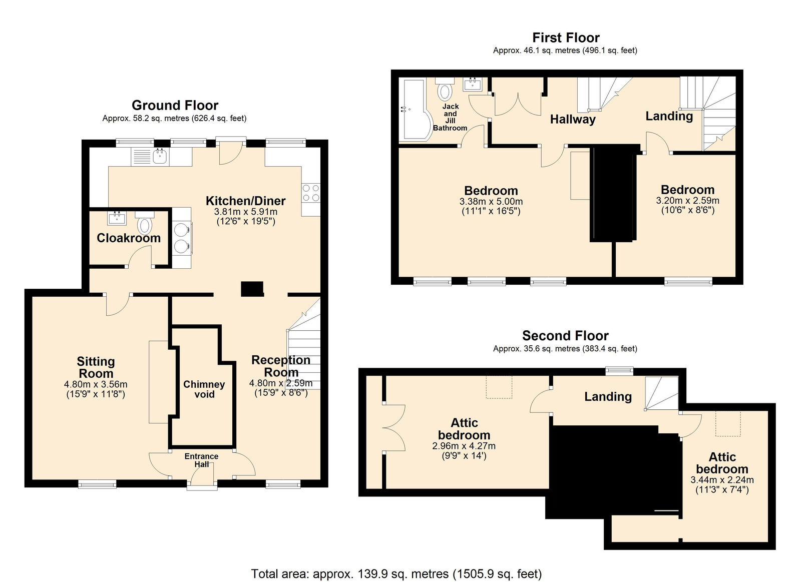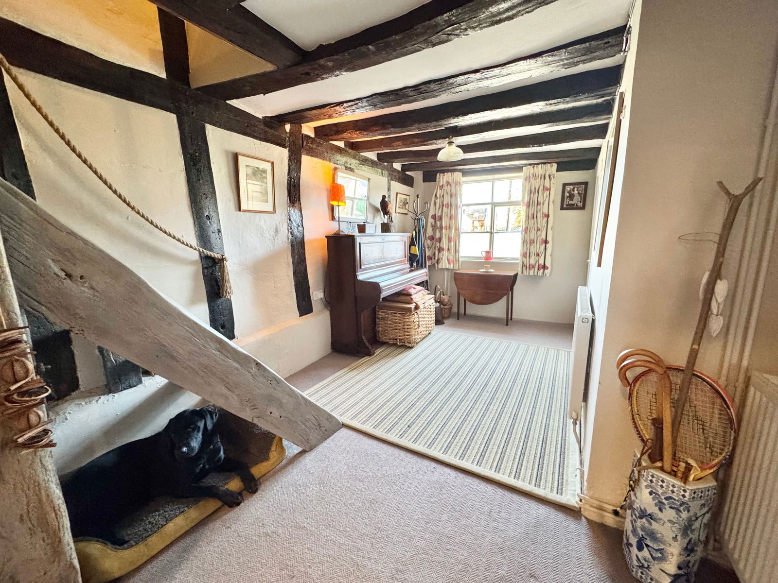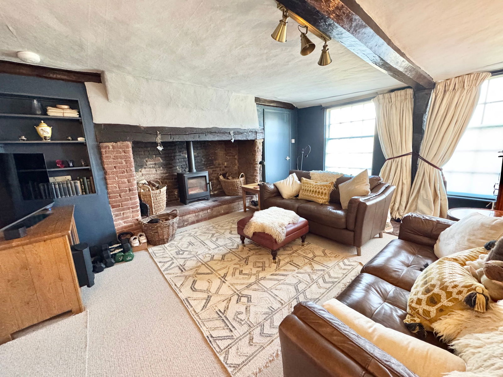 An Historic Building, Blair House is one of New Buckenham's original properties built in the 15th Century. The property features exposed studwork and beams and in the sitting room, an impressive inglenook fireplace which is fitted with a top of the range Danish wood burner with a recently replaced flue . The kitchen provides a good range of units and a navy blue electric AGA supplying a comfortable background warmth to this area as well as a means of cooking. For the warmer months, when the AGA can be turned off, there is an integrated NEFF oven and ceramic hob. The cloakroom doubles as a coat and boot room however a shower could be installed in this area too. Accommodation is spread over 3 floors with the 4 bedrooms on the upper 2 floors and all feature built in storage. The master bedroom being exceptionally appealing with an open stone fireplace. The upstairs family bathroom can be accessed from the master bedroom and the hallway - a 'jack and jill' configuration.