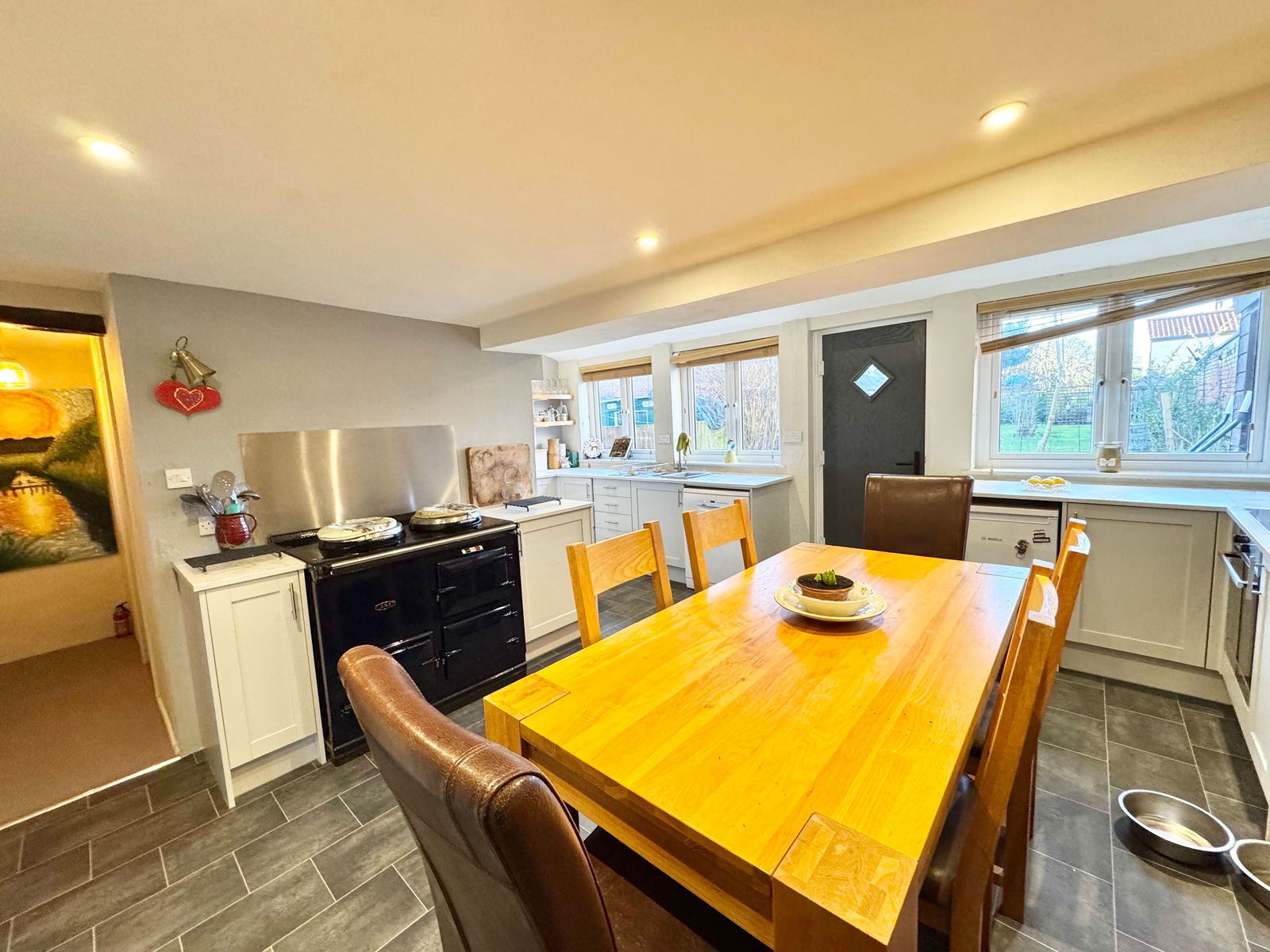 Mains water, drainage and electricity are connected. Heating is via new energy efficient electric radiators and the electric AGA.