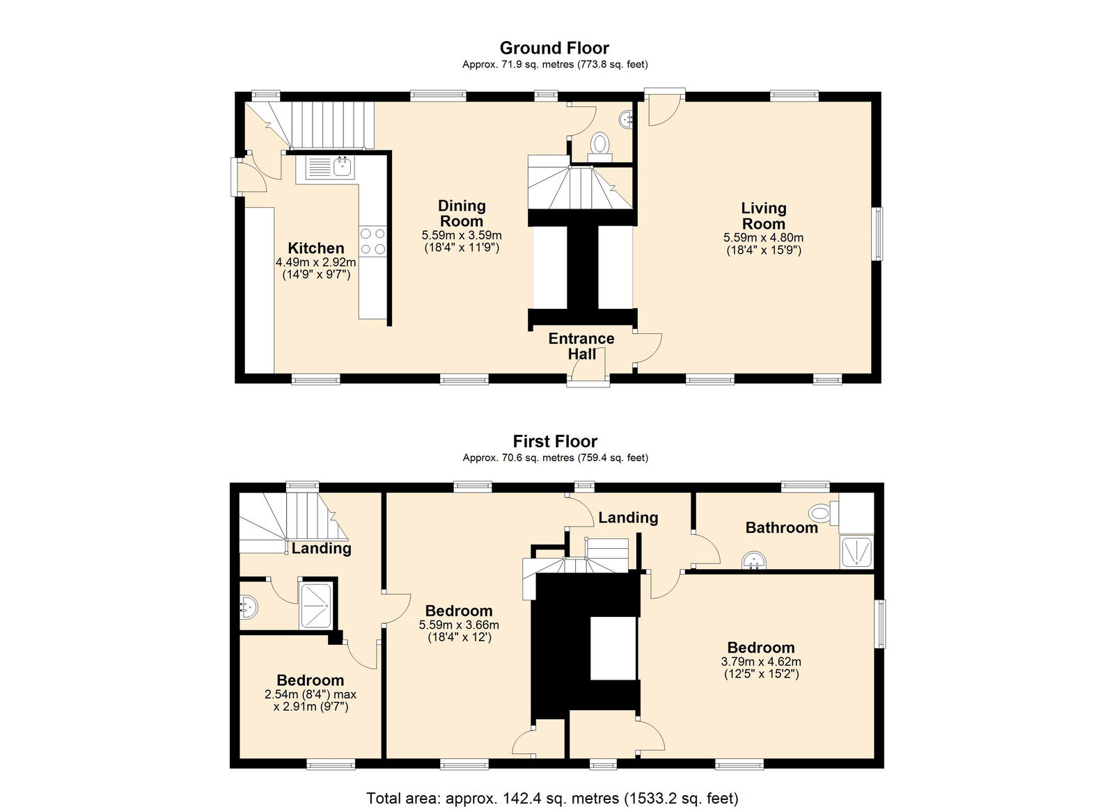 Mains water, electricity and drainage are connected to the property. Heating is via an outside combination boiler.