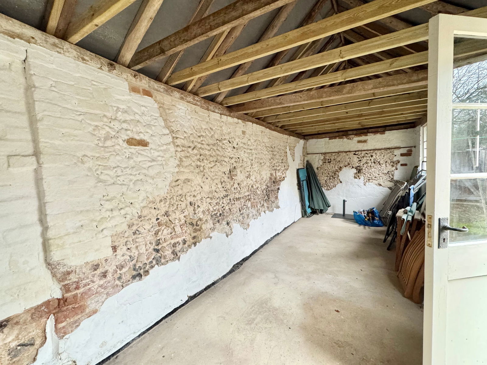 The open fronted cart lodge and air conditioned office annexe, with its own 3 phase electricity supply, is accessed from the gated courtyard parking area, with ample parking space for multiple vehicles, and is just a few steps from the main house. The recently renovated flint barn adjoining the house is accessed via a gateway to an inner courtyard. The Red House is set within a plot of 0.6 acre, the majority of which is laid to lawn with established beds, a wildlife pond, fruit trees and a number of larger mature trees. The workshop and store has power connected and there is also a Rhino greenhouse.