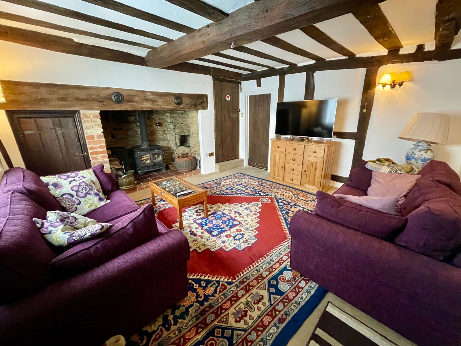 The cottage benefits from an interesting blend of 16th century and 17th character with a wealth of exposed timbers and an inglenook fireplace. As you wander through to the rear of the property, you can find a blend of a practical and sympathetic later extension, offering great family space with a view of the cottage garden. The accommodation is set over three floors and accessed via winding stairs and cottage doors. With flexible accommodation, this property lends itself to a growing family of all ages. At the side of the property is an integral cart shed with vaulted loft suitable for storage.