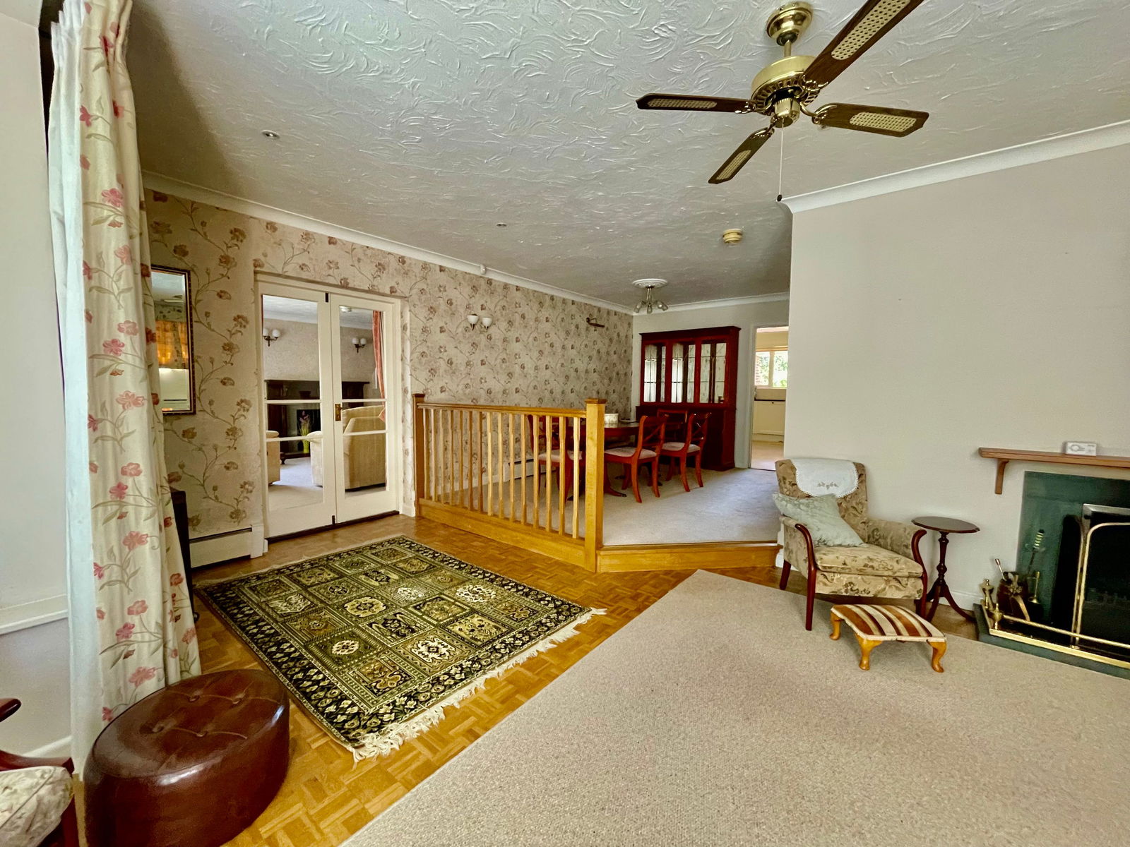 Greystones is a well-presented property positioned on an elevated site along Denmark Hill, offering breathtaking views of the surrounding countryside. Designed for comfortable living, the home features light-filled interiors with a neutral colour palette that amplifies the natural light pouring in through large picture windows. Over the years, the property has undergone significant upgrades, including modernized kitchens and bathrooms, as well as the installation of low-maintenance UPVC double-glazed windows and doors. The ground floor includes a spacious drawing room overlooking the rear garden, a sitting room with a large south-facing bay window and an open fireplace, a raised dining area, and a well-equipped kitchen with granite countertops, a butler’s sink, and integrated appliances. This level also houses two bedrooms with en-suite facilities, a utility room, a lobby, and an office. A conservatory, accessible from the utility room, leads directly to the garden. On the first floor, there are two additional bedrooms, both featuring fitted wardrobes and scenic views, along with a bathroom and extra storage space within the eaves.