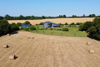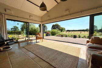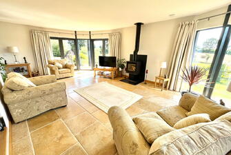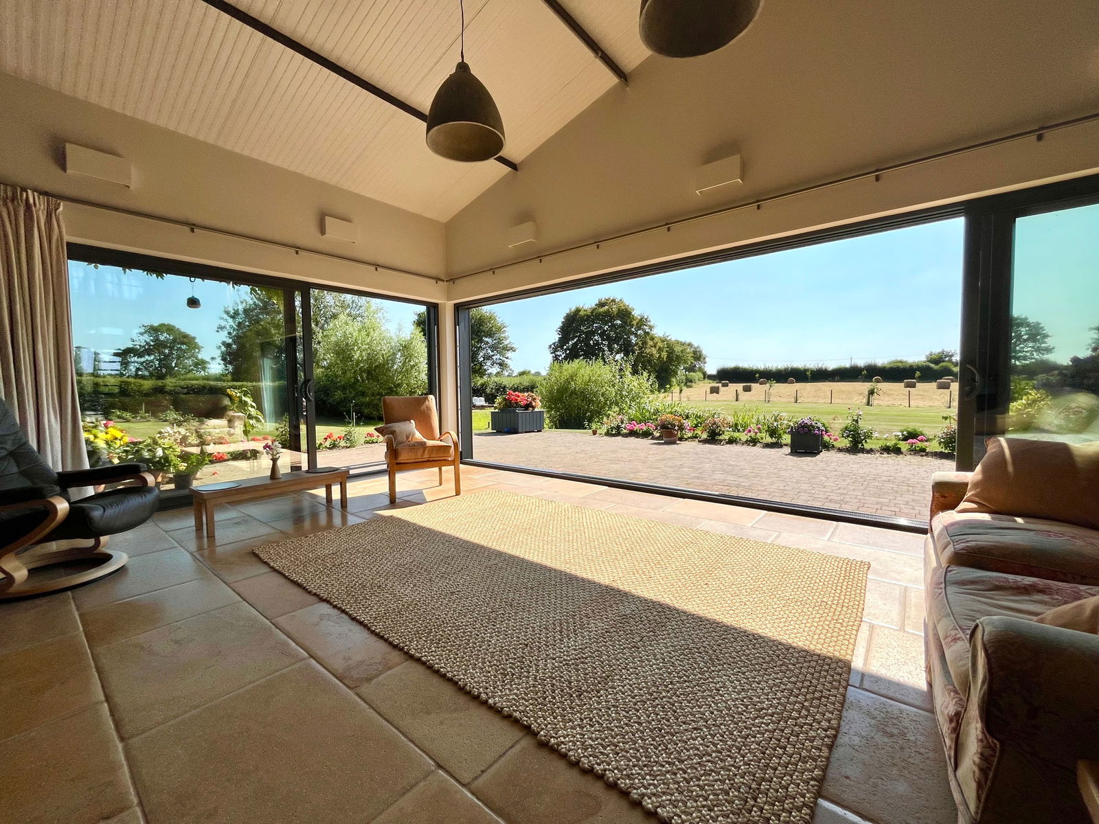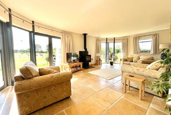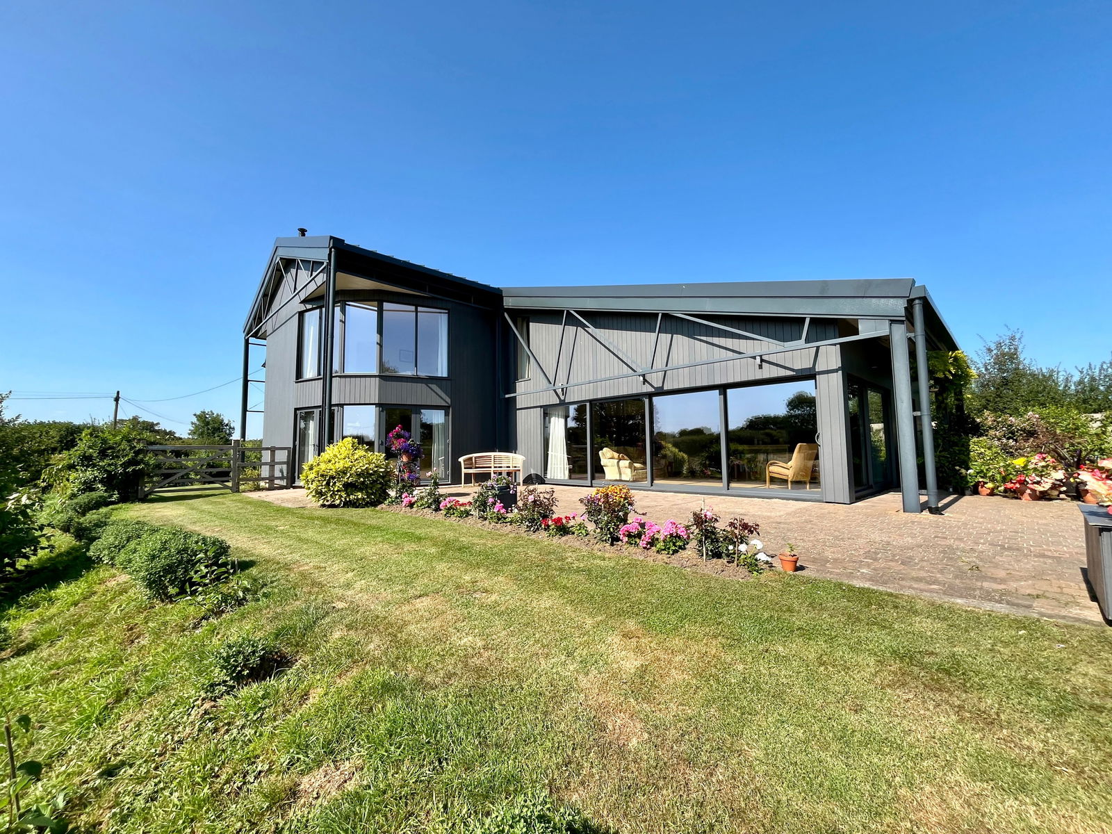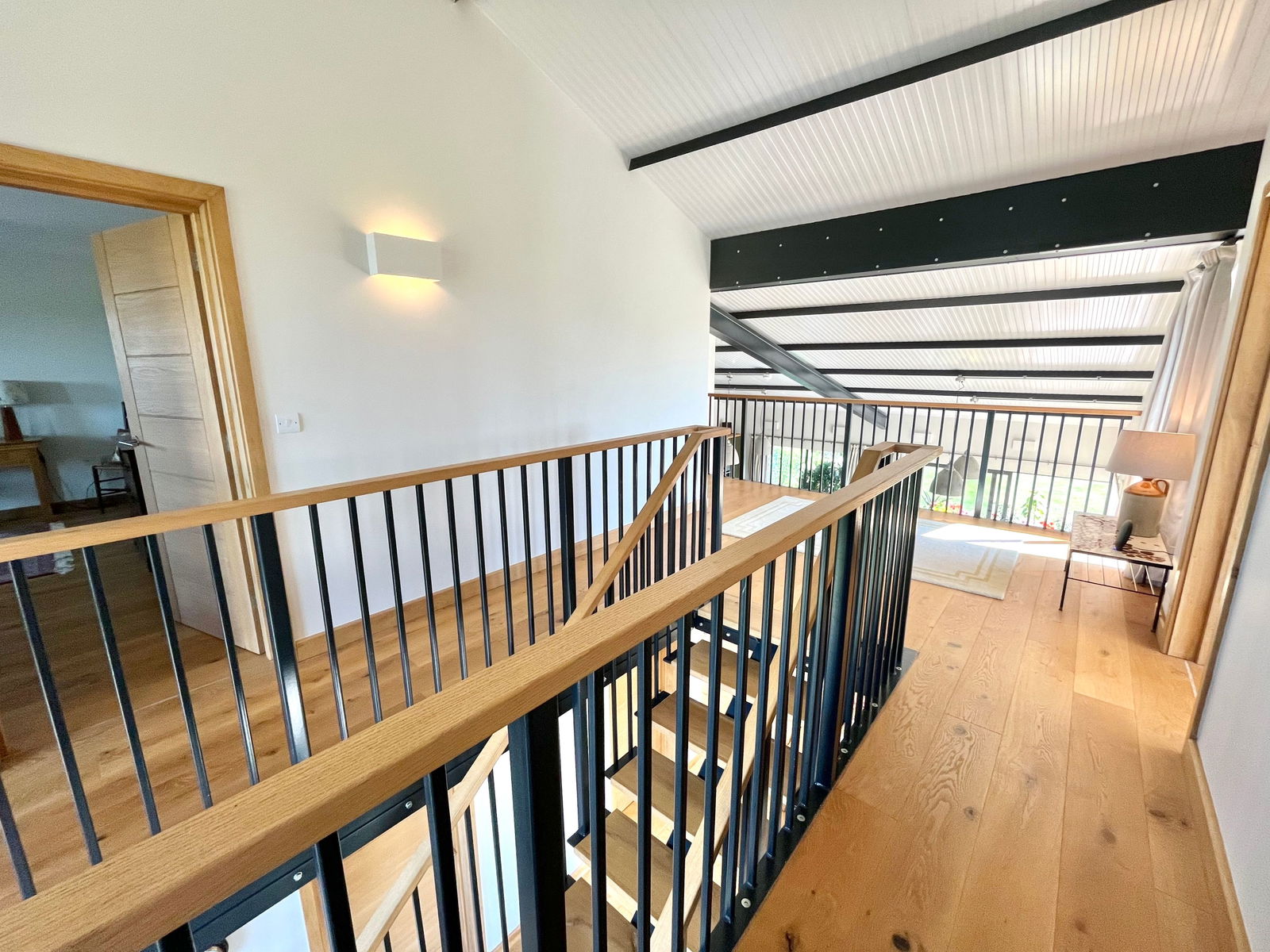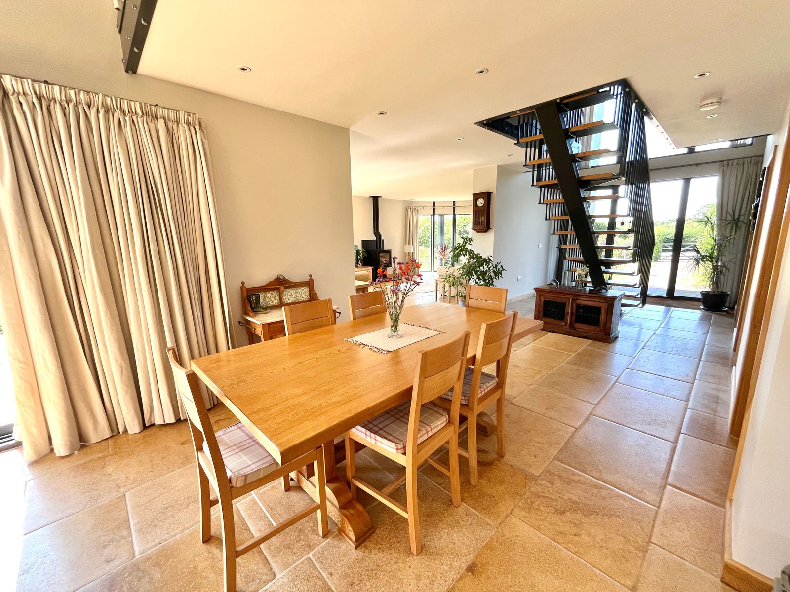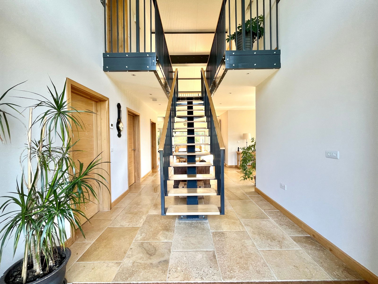 Welcome to Hay barn House, an architecturally stunning modern barn conversion set within approximately 4.069 acres of idyllic countryside. This exceptional property offers a perfect blend of contemporary design and natural beauty whilst providing very economical living. Upon entering, you're greeted by a striking modern staircase that ascends to a galleried landing, providing an impressive vantage point over the spacious family room. The ground floor features a well-appointed bedroom with an en suite shower room, a practical utility room and boiler room, and a generously sized lounge adorned with curved windows, offering uninterrupted panoramic views of the rolling hay fields.
