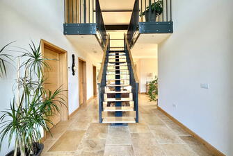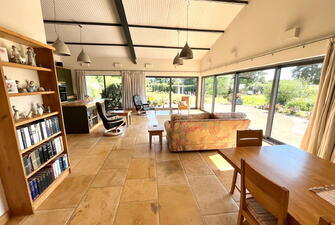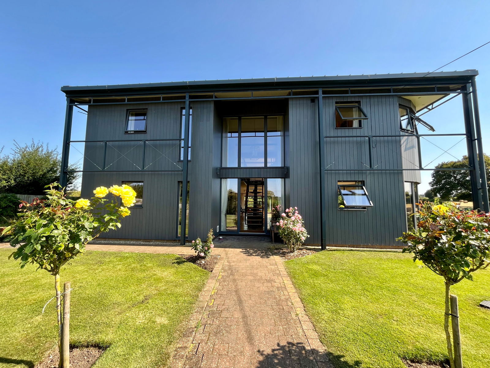 Hay barn House is a statement property, showcasing a harmonious blend of industrial and natural materials, including a robust steel frame, an elegant aluminium roof, and Accoya timber accents. This unique home offers a rare opportunity to experience modern luxury in a tranquil rural setting.