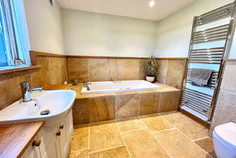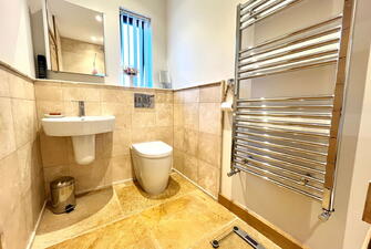 Mains electric and water. Air source heat pump provides central heating. Treatment plant for sewage.