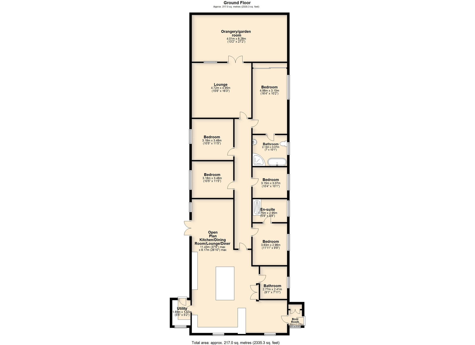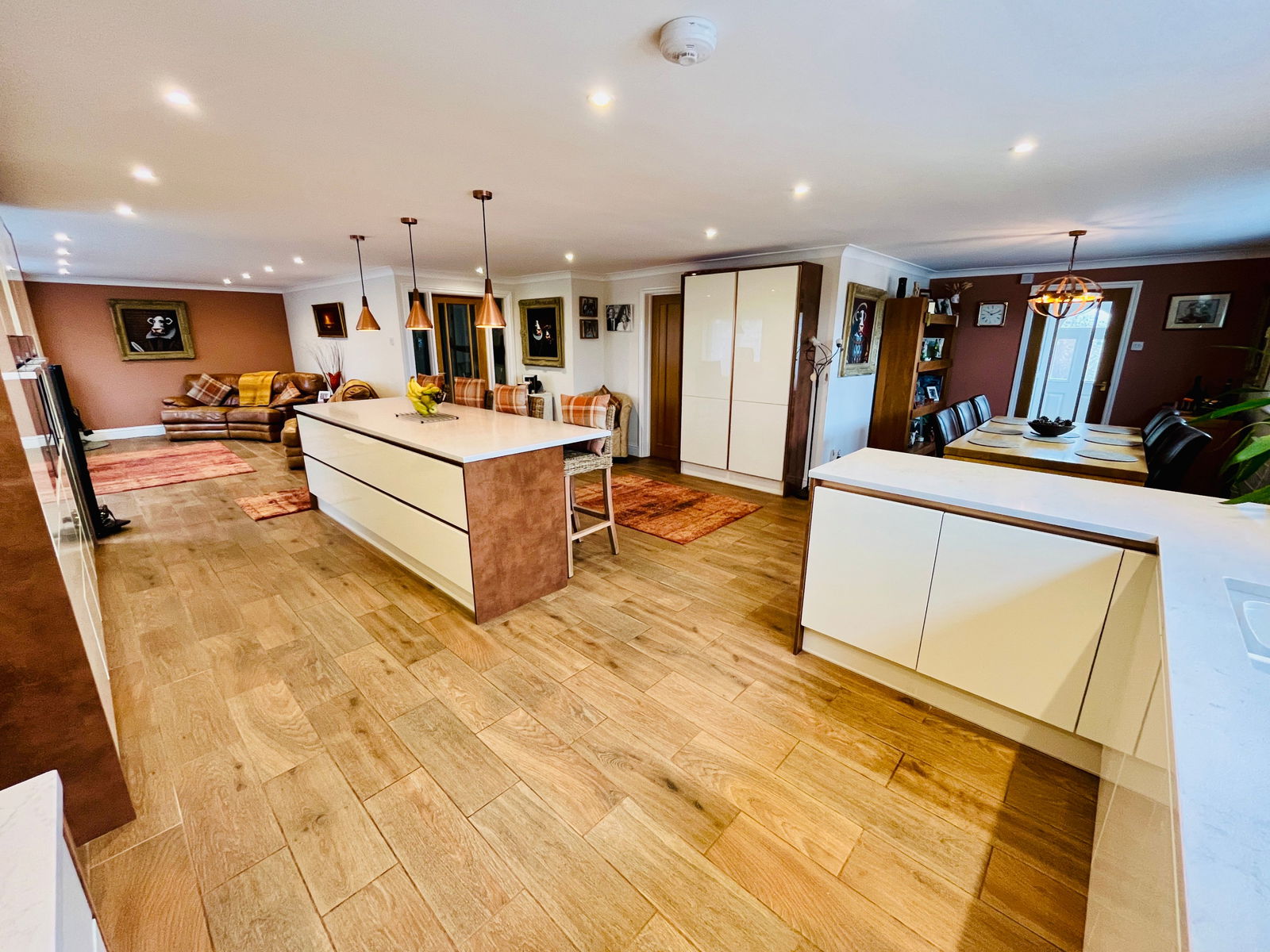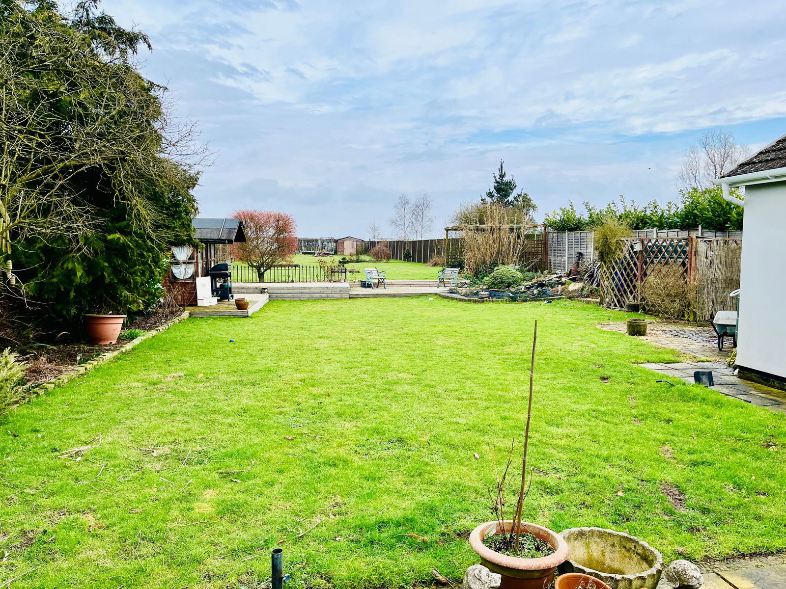 A truly unique opportunity to acquire this stunning five-bedroom detached bungalow, set on an impressive 0.45-acre plot with picturesque field views to both the front and rear. The property is entered via a practical boot room, leading into the heart of the home with a modern kitchen featuring a standalone island breakfast bar, built-in appliances, and a separate utility/laundry room. The spacious living areas include a formal dining area and an open-plan living room, ideal for both family living and entertaining. The generous master bedroom boasts built-in wardrobes and a recently renovated luxury bathroom with a roll-top bath and separate shower cubicle. Second bedroom with en suite shower room. In addition, there are three further bedrooms and a family bathroom. To the rear of the property, the large lounge flows into a an orangery/ garden room, offering stunning views over the beautifully maintained garden. This property combines modern living with peaceful rural surroundings, making it the perfect home for those seeking tranquility and space. Early viewing is highly recommended.