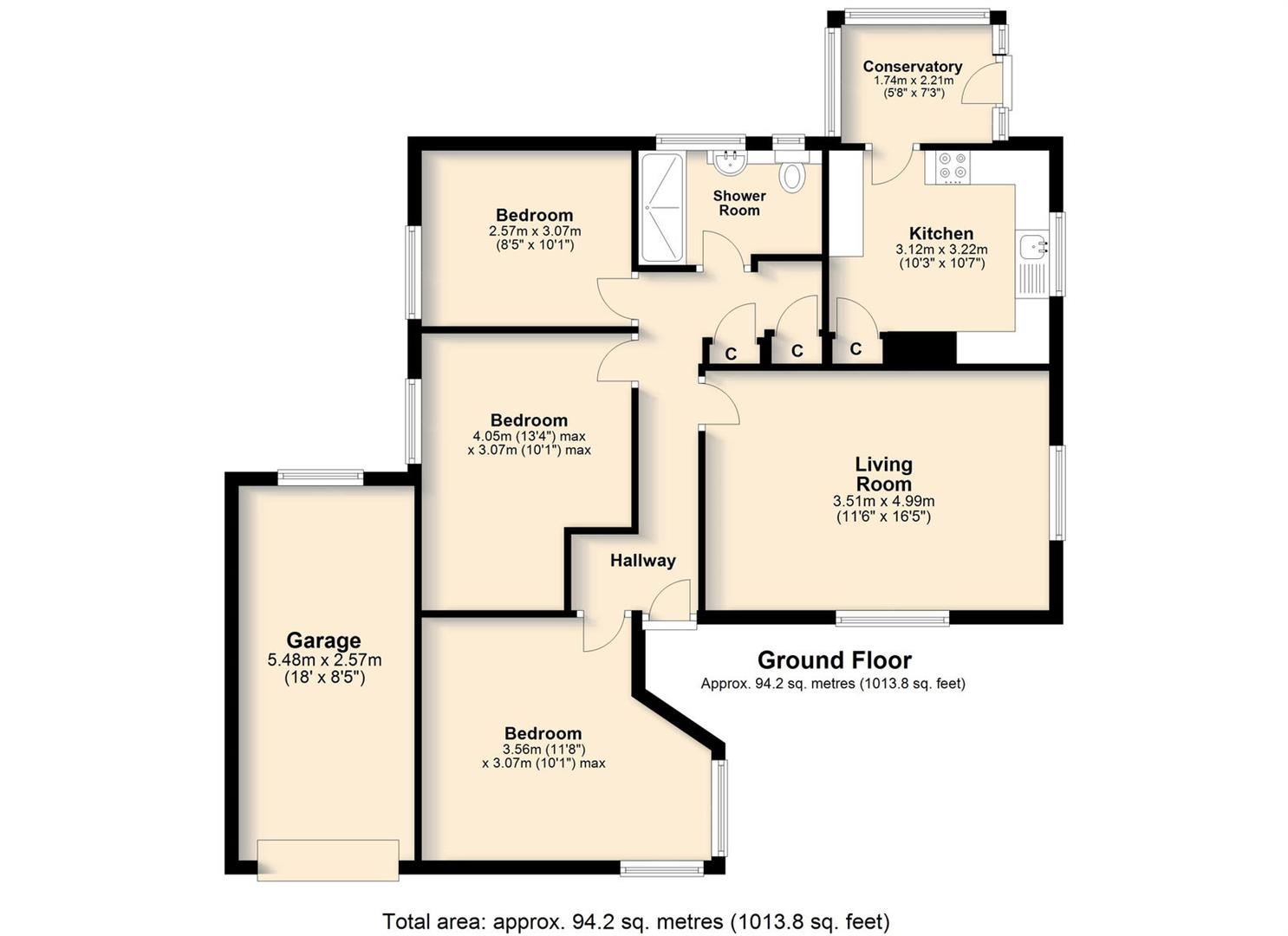 Established detached 3 bedroom bungalow. Good condition and neutral decor. Modern kitchen with Bosch oven. Stylish shower room with spotlights and rainfall shower. Conservatory. Enclosed rear garden. Garage and driveway space for two vehicles. Roughly 0.5 mile from the town centre. No onward chain.Full Description