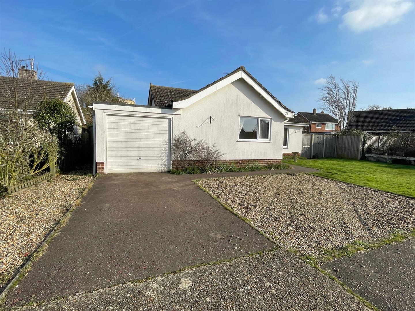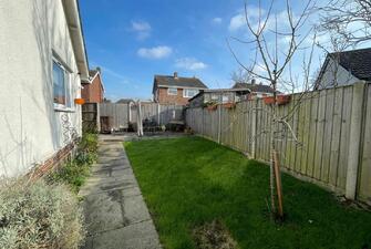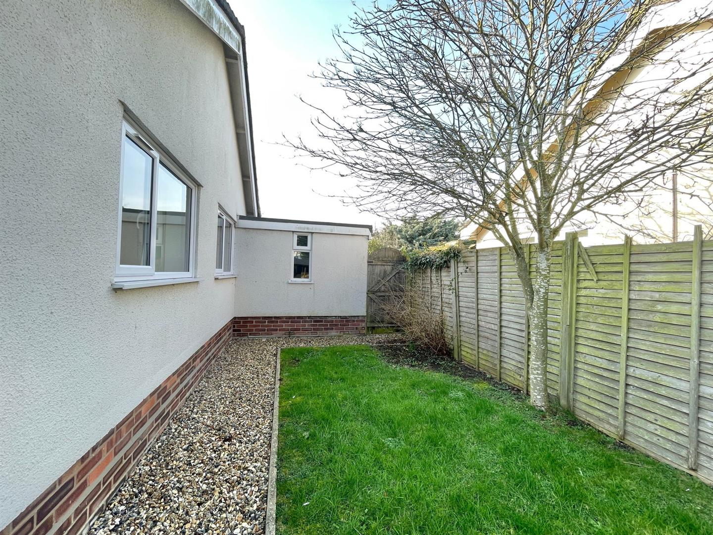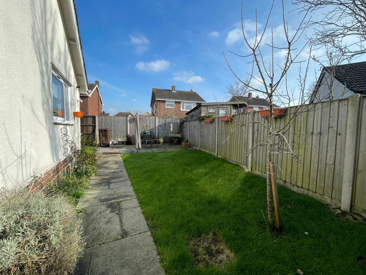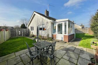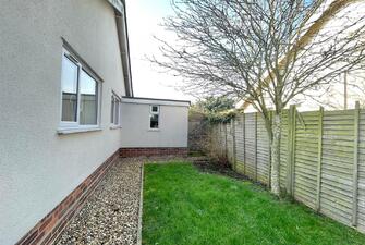 Hardstanding and shingle driveway which caters for a couple of vehicles. Single garage adjoins the bungalow. A gate either side of the bungalow provides access to the rear garden which is enclosed and laid to lawn with a paved patio area.
