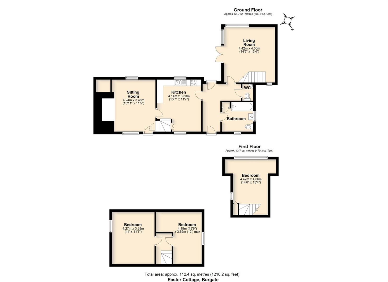 LocationEaster Cottage is set within the picturesque hamlet of Burgate which comprises a number of period homes set back off an area of common land. The location is ideal for those wanting a taste of rural life yet be close to day to day amenities. The nearby village of Botesdale has a small supermarket, doctors, pubs, restaurants and school and there is also a village shop, post office, school and restaurant at nearby Wortham. The bustling market town of Diss is just 6 miles away with a mainline railway station on the Norwich to London Liverpool Street line, a journey taking around 90 minutes. The beautiful Heritage Coast around Southwold, Walberswick and Aldeburgh is around 40 minutes by car.