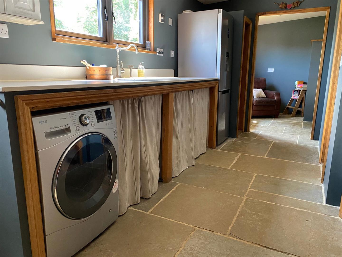 Mains electricity and water are connected to the property and hot water and underfloor heating is split provided by an air source heat pump.