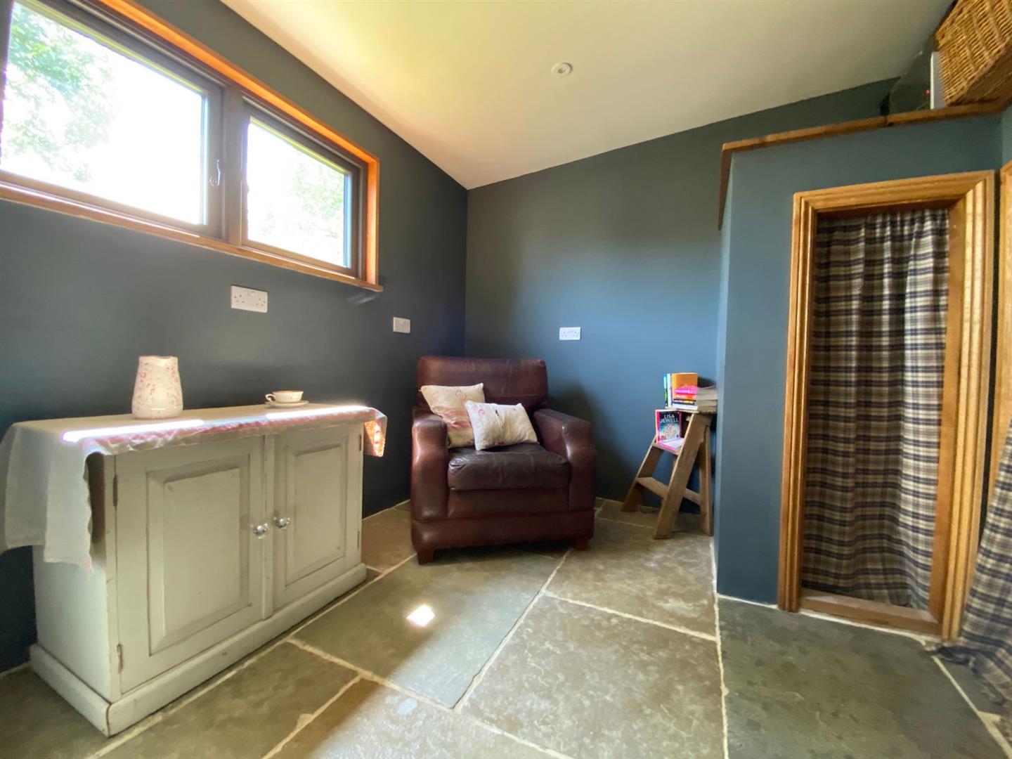 The delightful self-contained annexe offers a cozy open-plan kitchen, living room, and bedroom, complete with an en-suite bathroom. Heating is efficiently managed with radiators and hot water supplied by LPG from the main tank, controlled by the Hive system for ultimate convenience and comfort.
